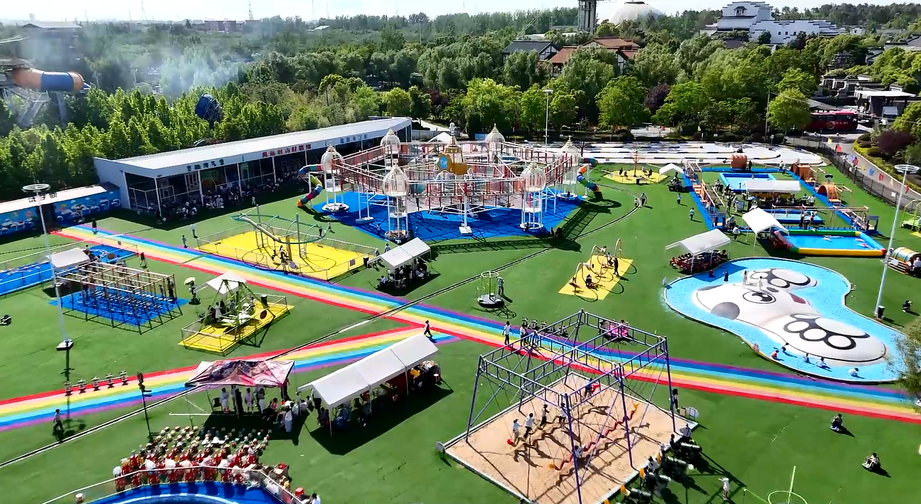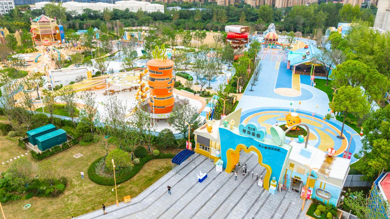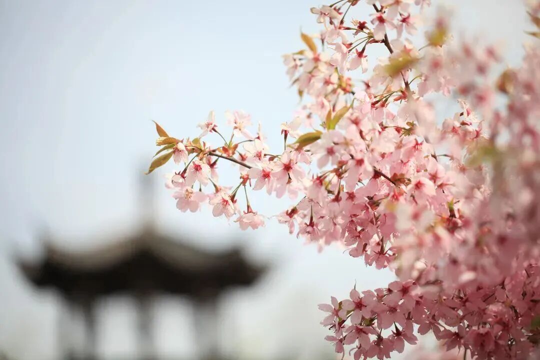 中国(合肥)非物质文化遗产园里,樱花正值盛放,粉白花瓣随风飘落,与园内的徽派砖雕相映成趣;七彩花朵儿童乐园则是孩子们的欢乐天地。