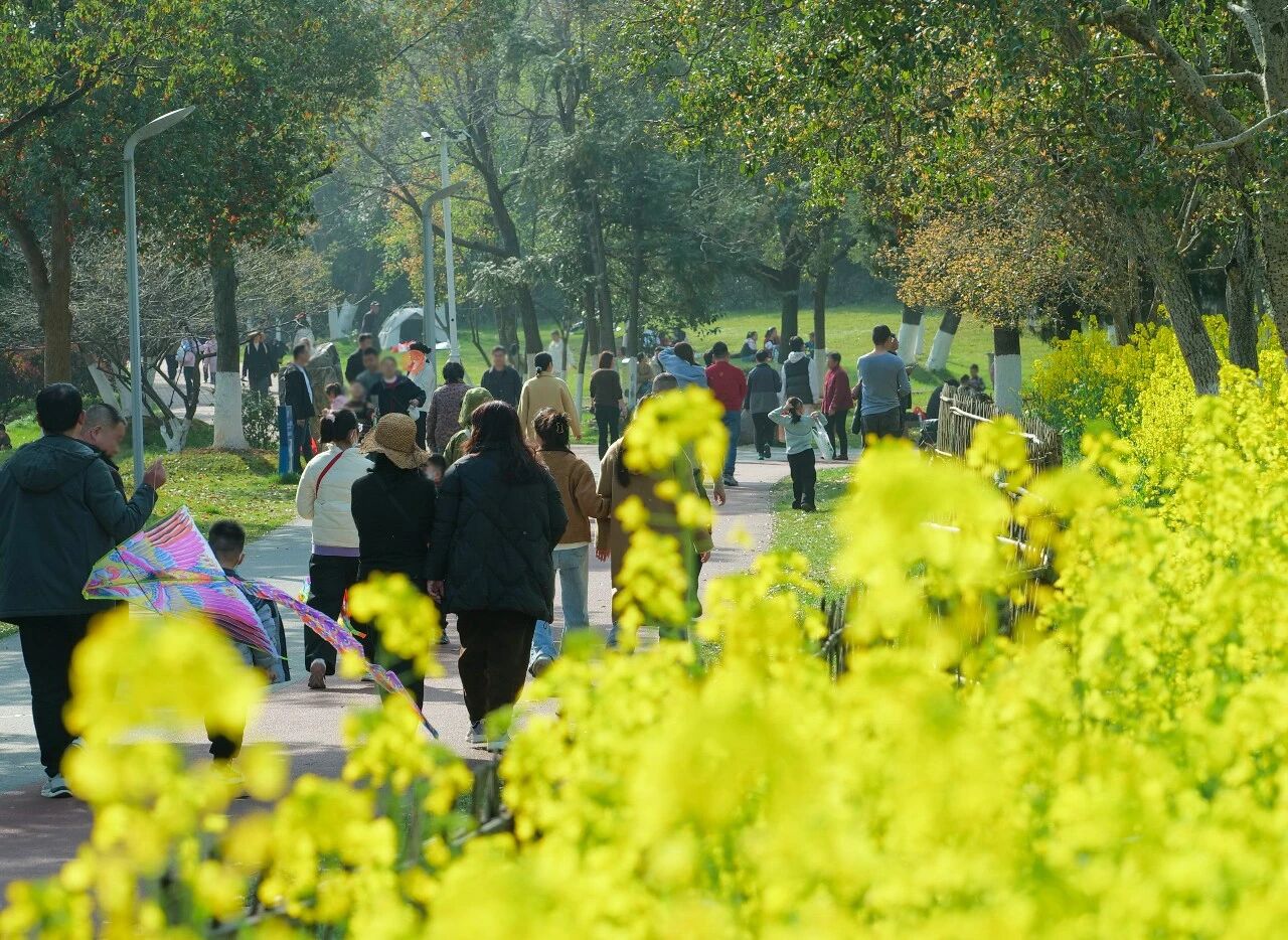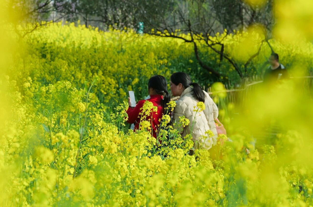 此刻的二龙岗,油菜花迎来了它的“高光时刻”。金灿灿的,一片连着一片,在阳光下明亮得晃眼。风轻轻一吹,花枝便跟着簌簌摇曳,像是大地在温柔呼吸。放眼望去,满目金黄,人往花海前一站,自己也成了画中的风景。