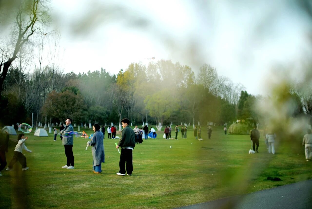 几个孩子追着一只风筝跑,笑声清脆响亮,父母在旁边笑着摇头,眼里却全是温柔。