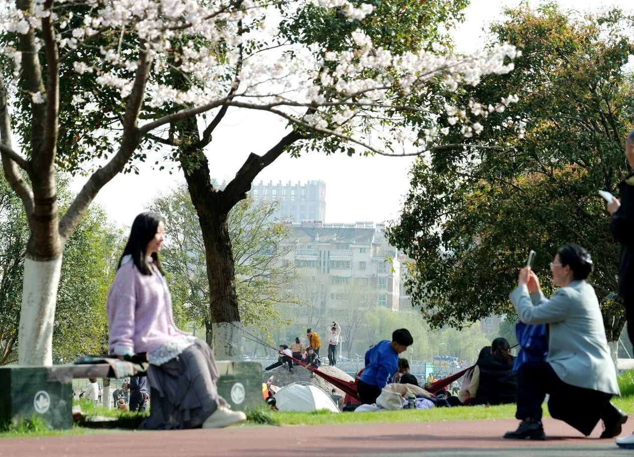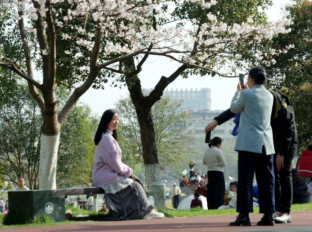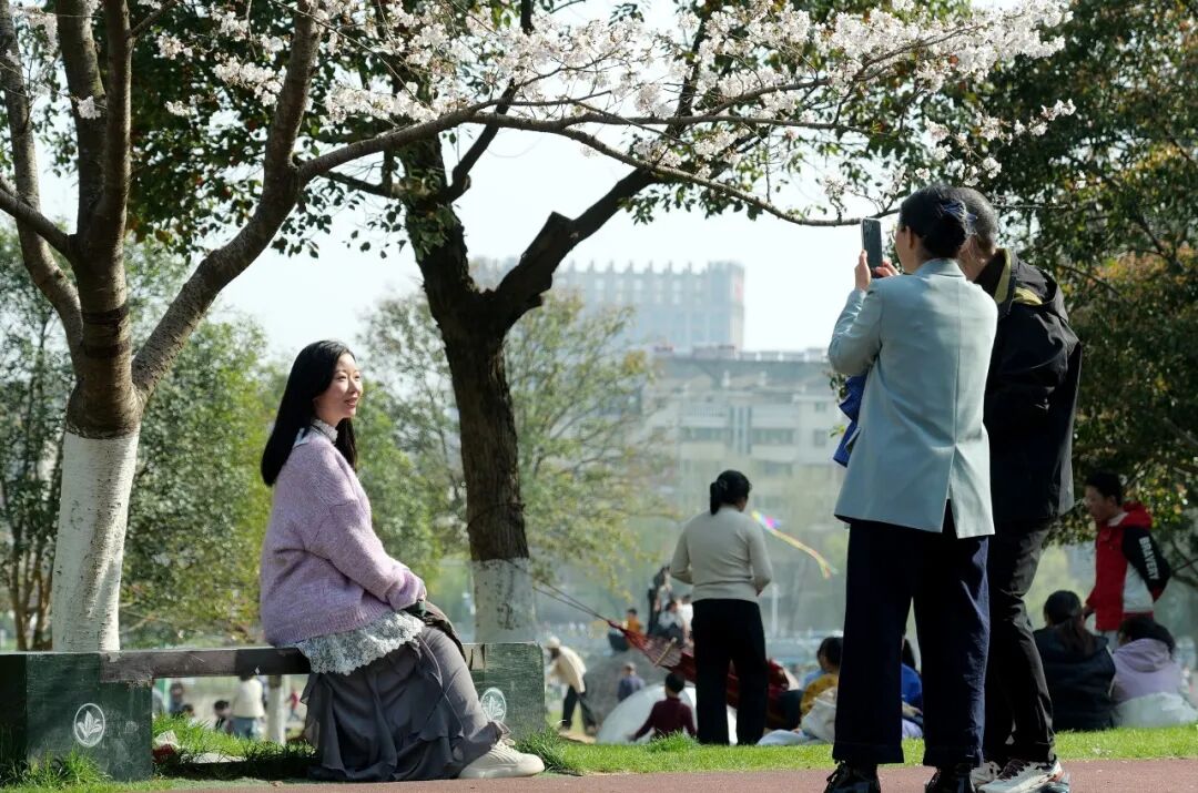 春风一吹,金寨城区的二龙岗公园就换了衣裳。