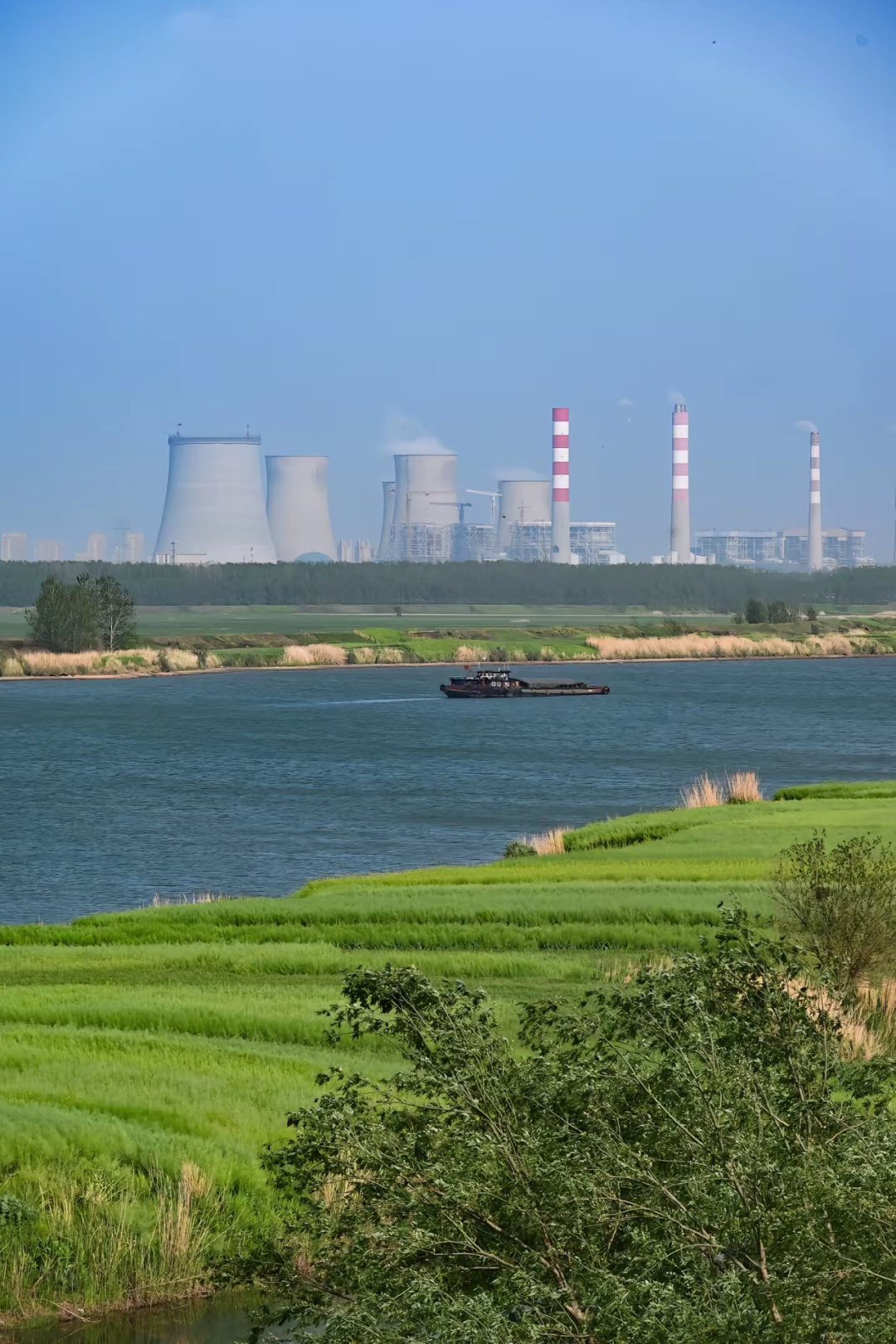 站在淮河大坝上远眺