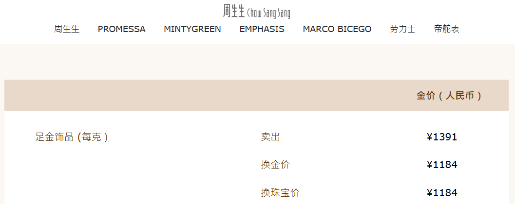 3月28日,国内黄金饰品价格对比显示,多家黄金珠宝品牌公布的境内足金首饰价格较前一日有所上调,老凤祥报价1396元/克,较前一日1368元/克上涨28元;老庙黄金报价1397元/克,较前一日1365元/克上涨32元;周生生报价1391元/克,较前一日1364元/克上涨27元。