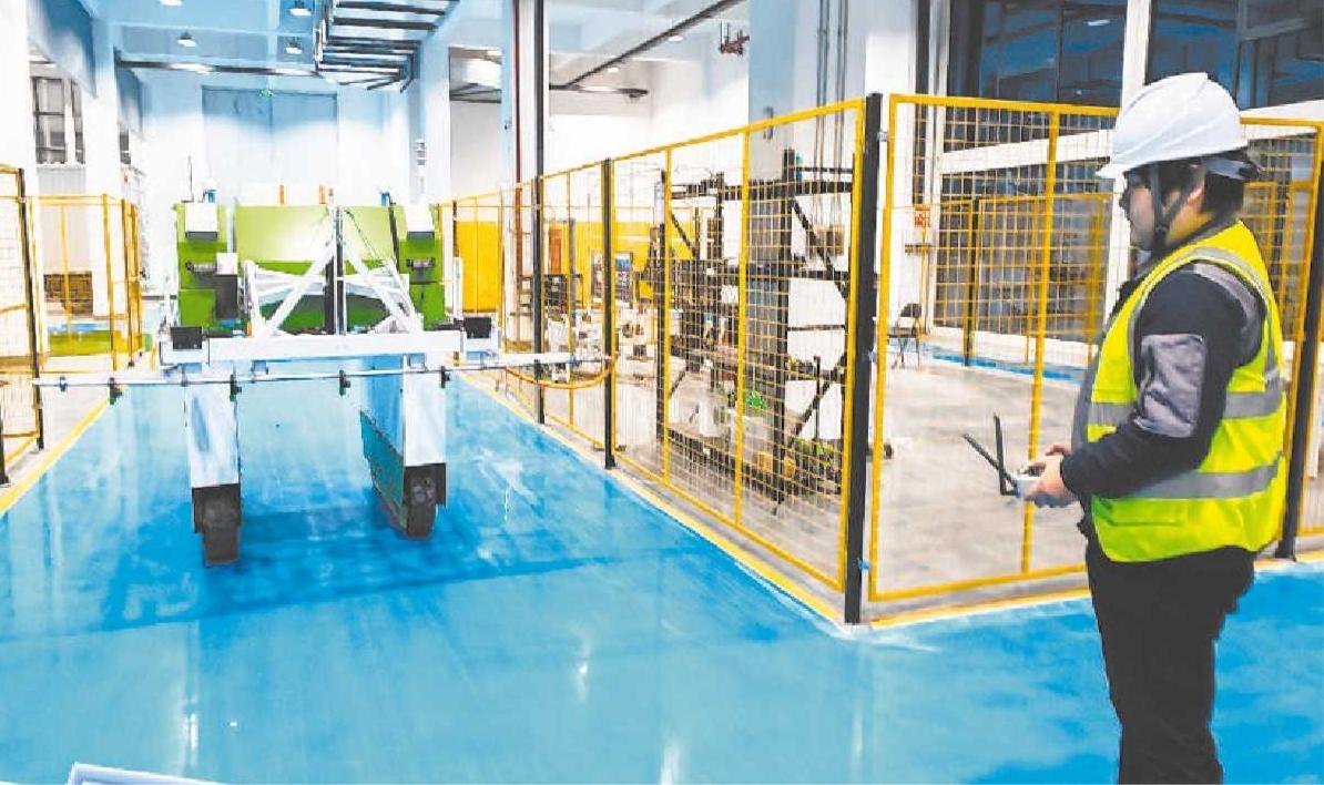 技术人员现场演示“药用除草机器人”。
