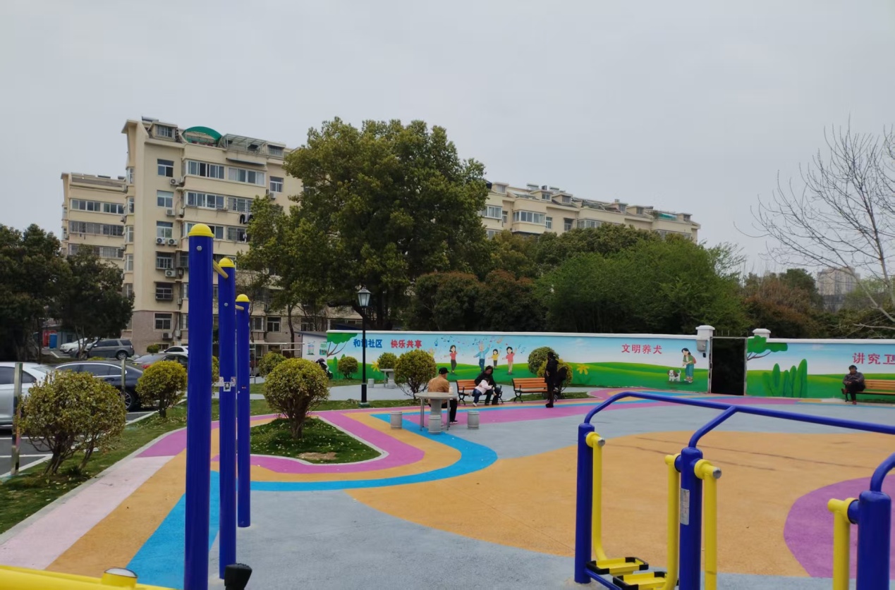山明水秀色彩夺目运动器材集中的塑胶广场