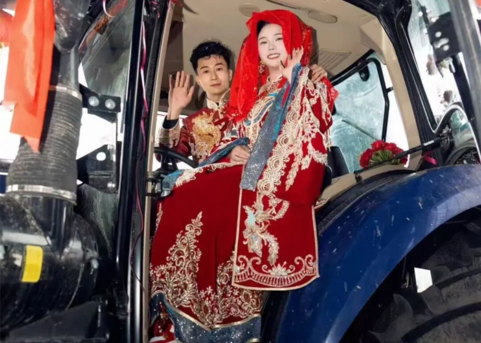 孙瑞莹的娘家多年来一直从事农机行业,她本人也是一名活跃在田间地头的女农机手,日常驾驶拖拉机、收割机穿梭劳作,对农机有着深厚感情。她坦言,这样的婚礼简约而不简单,热闹又有意义,比起奢华排场,更能留住温暖与初心。
