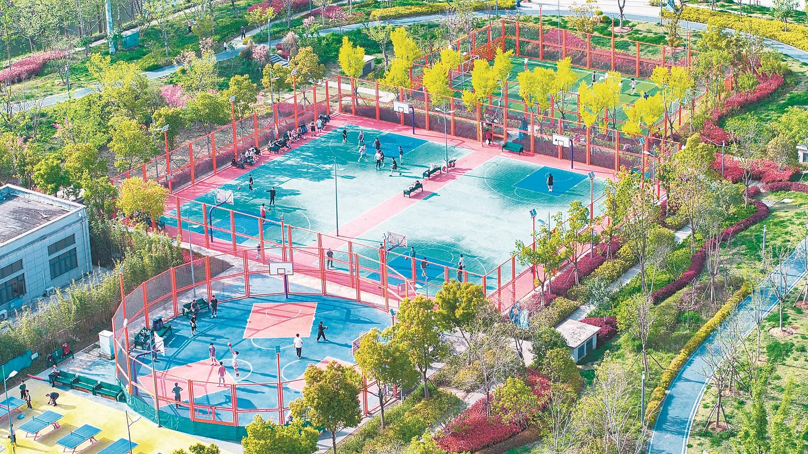 4月5日,合肥市南淝河体育公园,市民正在健身。通讯员 赵明 摄