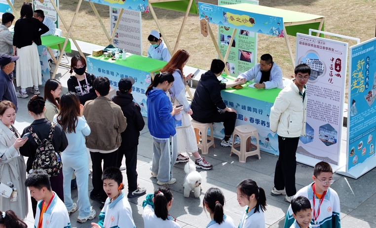 4月5日,歙县徽州古城府前广场热闹非凡,新安养生局之春季养生专场火热开启。活动设八大特色板块,市民游客现场品养肝茶饮、尝艾草青团等养生药膳,体验耳穴压豆、中医义诊,跟着练八段锦、玩投壶,在吃喝玩乐中解锁养生干货,沉浸式感受新安医学的魅力。樊成柱/摄