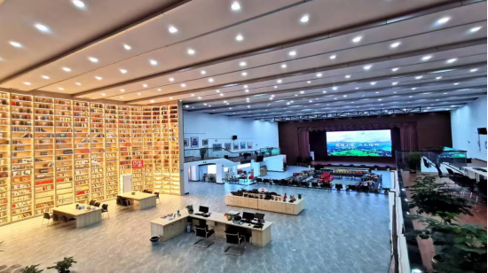 走进青阳县杨田镇,一座由老电影院改造而成的建筑格外引人注目。八九米高的落地书架、现代化的直播设备、琳琅满目的农特产品……这里,就是青阳县县级和美乡村直播中心——杨田农展中心。