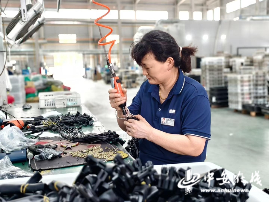 “我们生产的两轮电动车电控系统总成,就相当于电动车的‘神经中枢’,具备全防水和全阻燃特性,有效地提高了电动车的安全性。”在一台台半自动霍尔焊接机前,企业技术部经理刘晓峰告诉记者,企业自2023年12月导入新生产线,人效从原来的每条生产线10人,减至8人,企业自主开发模具,实现原材料到成品的全链条生产。