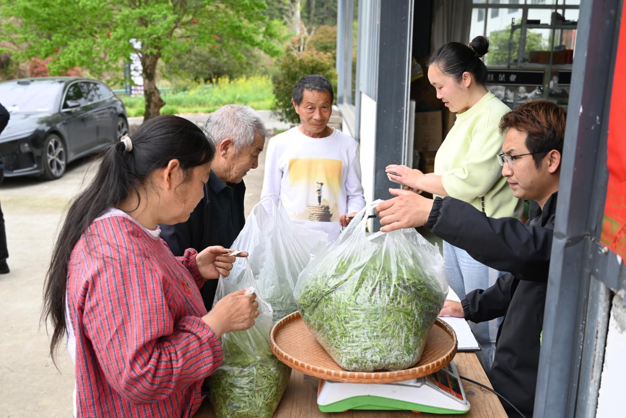 “今天采了20多斤茶叶,家门口就有茶厂,直接可以变现,方便多了。”茶农王征民十分高兴。4月7日下午四点,来到位于祁门县闪里镇的祁岁红茶厂,附近茶农已陆续将刚刚采摘下来的鲜叶,送到厂里茶叶收购点,经过一番评质论价,很快将鲜叶变现。