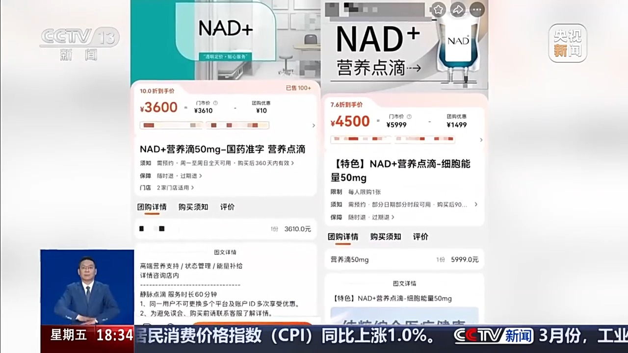 最近,一种叫“NAD+”的注射项目在网上悄悄火了。一些商家宣称这是营养点滴、抗衰神药,不仅能逆转年龄,还能提升精力、修复机能。这样的“营养点滴”有的售价高达数千元,但还是吸引不少人买单,这到底是黑科技还是新套路?