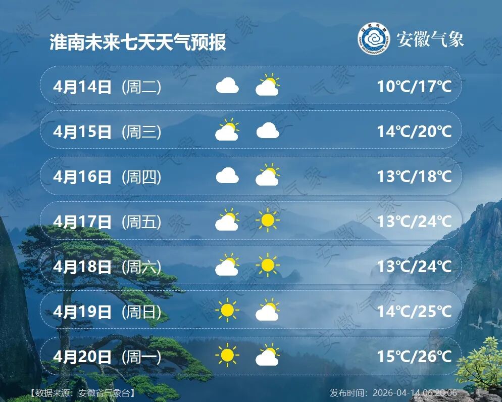 20日(周一):全省多云转阴天,大别山区局部有小雨。
