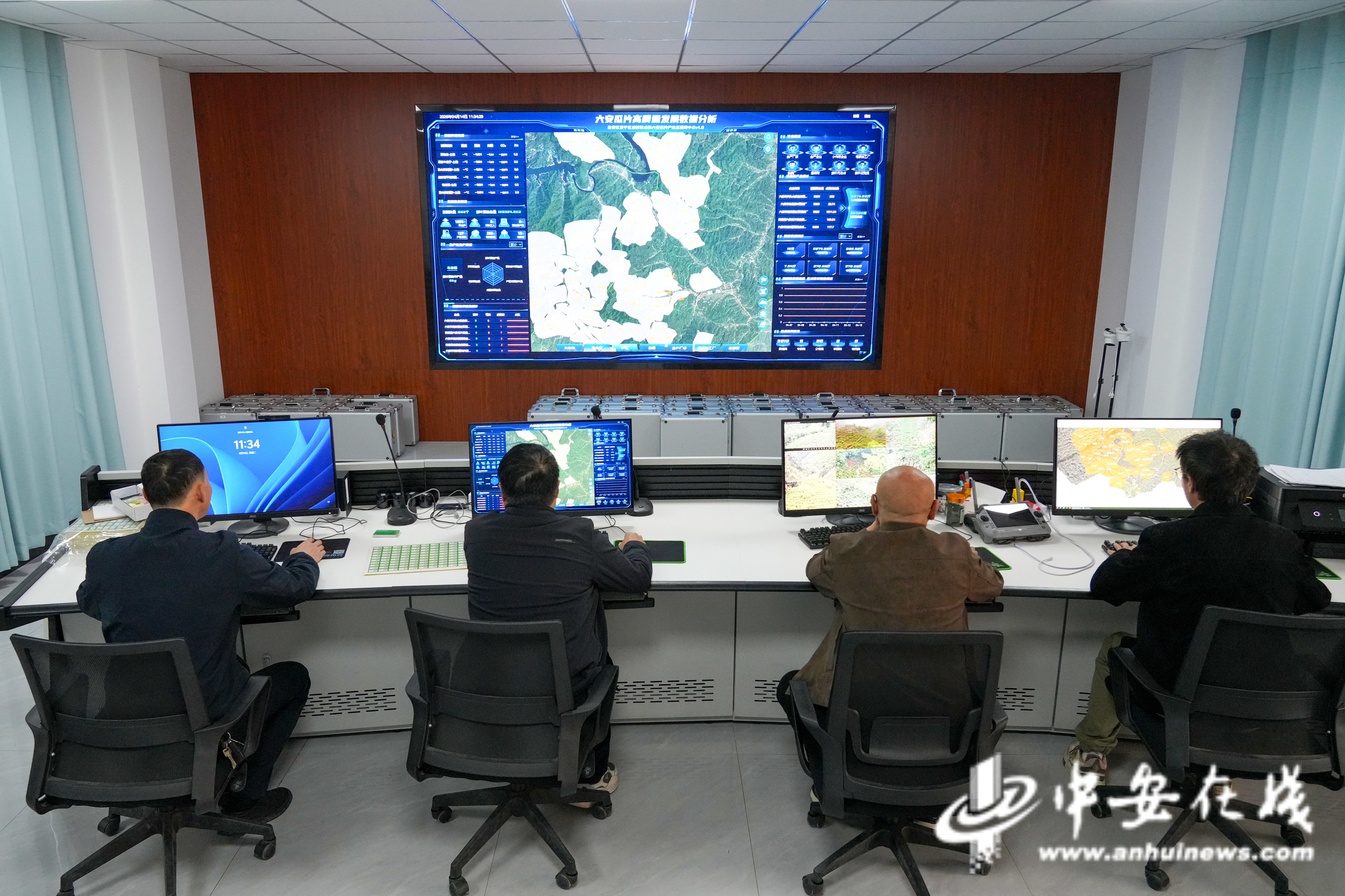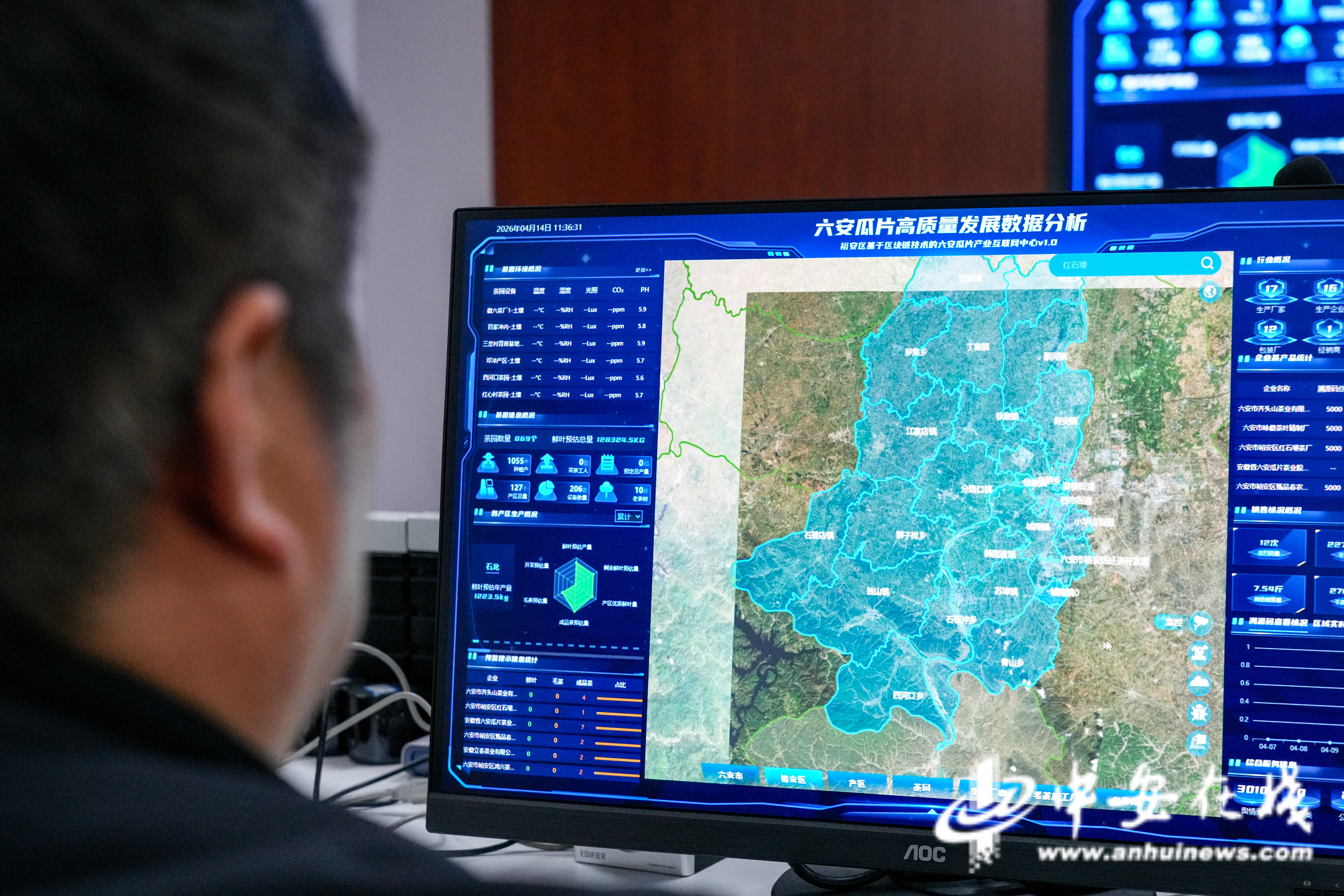 工作人员监看六安瓜片高质量发展数据分析系统