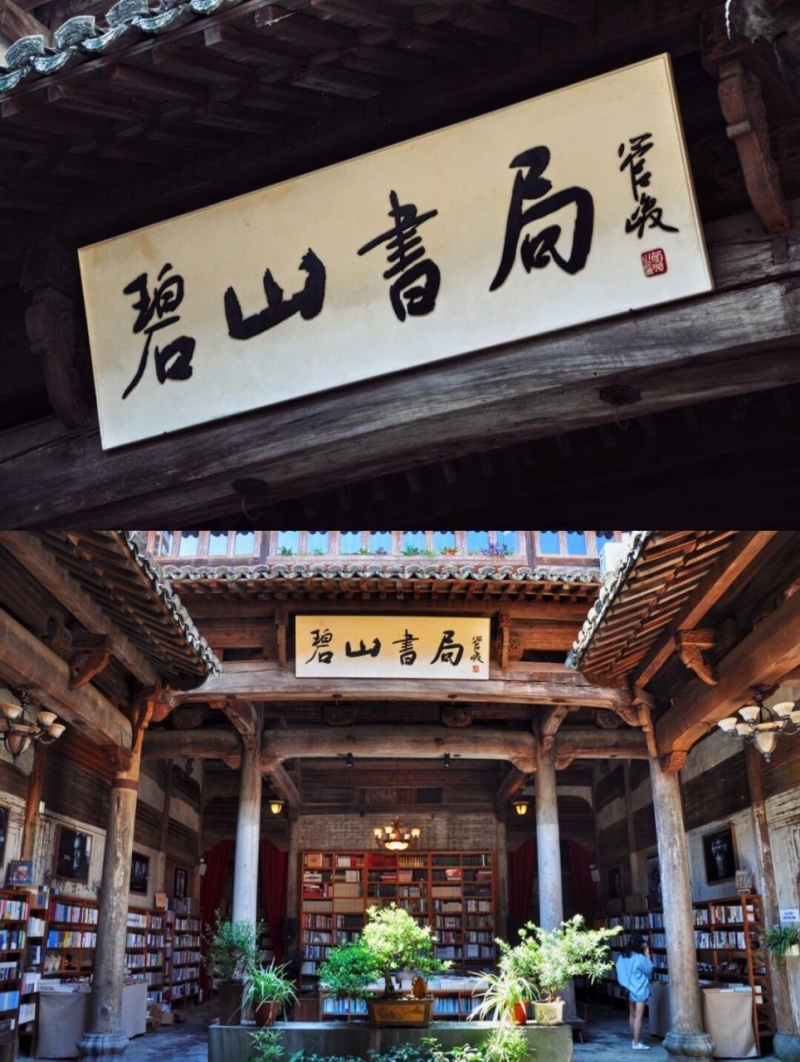 穿过村口的小卖部,拐进一条铺着青石板的窄巷,粉墙黛瓦的碧山书局跃入眼帘。这座古宅曾经是清代祠堂,拥有两百多年历史,2014年成为先锋书店的一家分店。碧山书局完整保留了古建的原始结构,两侧厢房改造成的书架采用可移动模块,不损伤古墙,又能灵活陈列书籍。书架上,藏书多与徽州建筑、人文民俗相关。正厅里,灯光柔和,既避免强光伤害古建,又为阅读添了几分静谧。古祠堂变为公共文化空间,也成为连接村民记忆与游客体验的纽带。