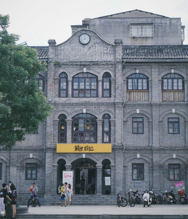“前言后记”安庆劝业场店前身是1915年12月建成的安徽劝业场,是中国现存最早的劝业场,也是省级文物保护单位,见证了中国从清末“实业救国”到当下“全民阅读”的百年社会变迁。经营总面积1800平方米,图书种类1.2万种。书店的整体架构呈三层“回”字形,在内部设计中,围绕建筑的历史背景,保留老式木地板、国货老字号等风情;在背景墙面上,嵌入城市沿革建制、传统文化、历史人物等介绍,设置“宜城往事”“书影相随”等专区;在角落空间里,错落有致地摆放钟表、旧海报、唱片机、缝纫机等老物件。同时,现代风格软装的书吧、主题书房,使其保留原有历史厚重感的同时,又充分融入了现代文化。