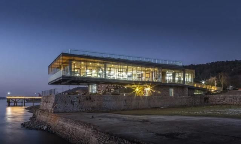 铜陵滨江码头书屋占地516平方米,是利用长江上的一座废弃码头打造的书屋,其主体建筑架构为钢结构和玻璃幕墙。书屋将原码头空间分隔成了上、中、下三个层次,顶层观江、中层阅览、底层冥思。室内除去有桌椅外,还打造了以书架为墙、书架为椅,面向江面逐级跌落的台阶状阅读空间。阅读点外立面采用毛石、防腐竹、旧枕木等原生态材料,与所在的铜陵滨江公园生态系统遥相呼应。