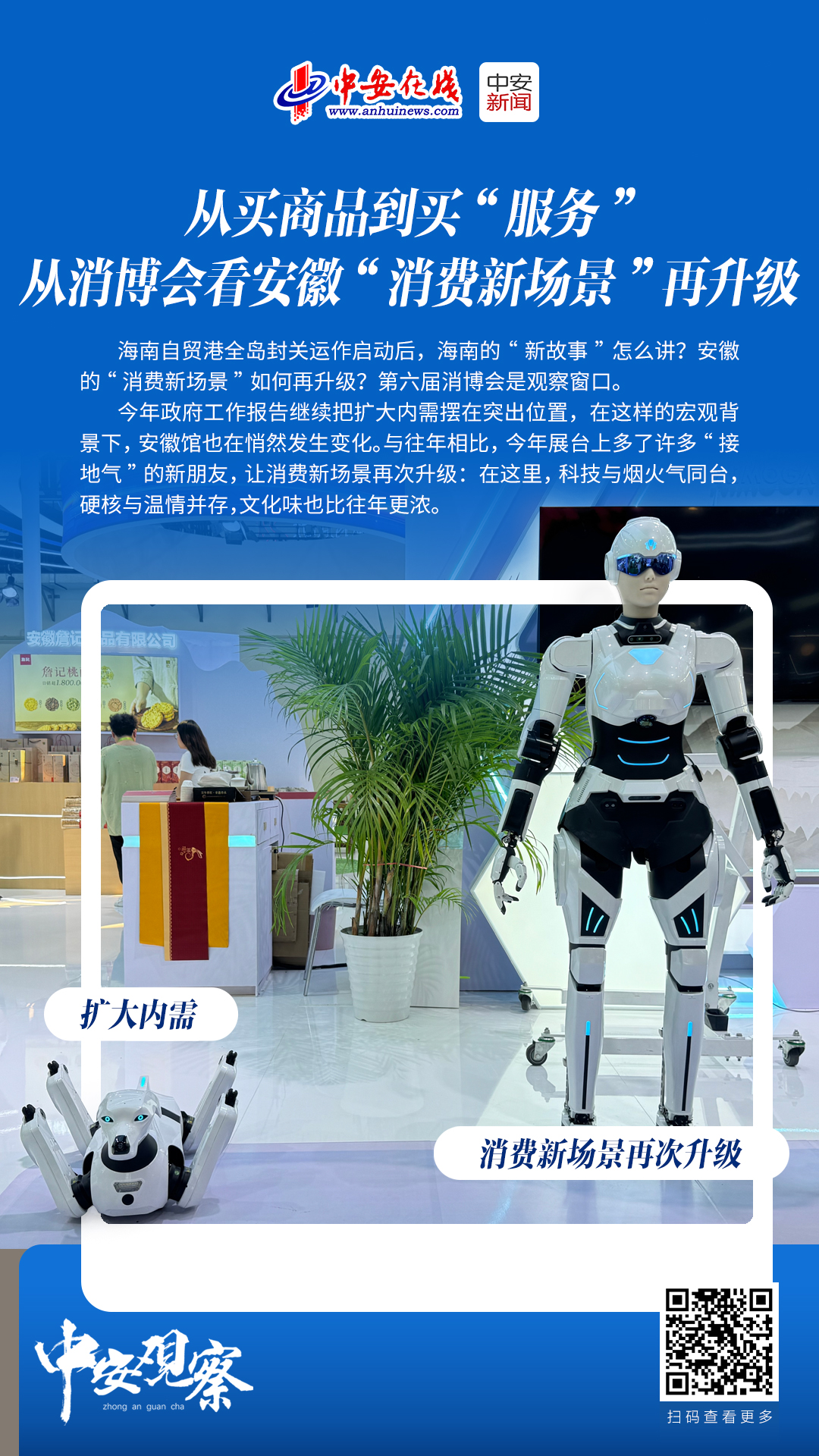 中安在线、中安新闻客户端讯 海南自贸港全岛封关运作启动后,海南的“新故事”怎么讲?安徽的“消费新场景”如何再升级?第六届消博会是观察窗口。