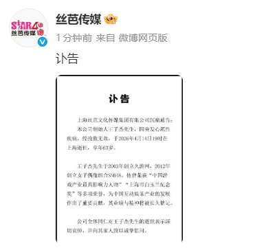 公开资料显示,王子杰(Oji Takeshi),1963年生于上海,祖籍浙江宁波,日本籍汉族人士。本科毕业于复旦大学数学系,后获日本同志社大学工学硕士学位,现任上海丝芭文化传媒集团有限公司总裁。