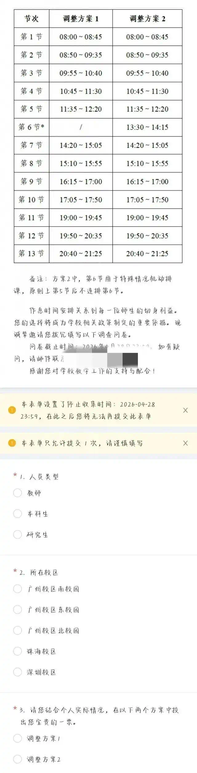 表象之下,根源指向的是决策机制本身。作息调整这类直接影响师生日常生活的事项,往往由教务部门主导推进,师生的声音很难在方案成形之前进入讨论。此次问卷调研,看似是征求意见的重要环节,实则是决策方向已定之后的程序性确认:两套方案均以压缩课间为前提,师生能做的只是在既定框架内圈选,而非真正参与方案的形成。更有学生反映,身边不少同学并未受访,调研覆盖面本身存疑。当师生参与止步于浅层投票,改革的师生信任基础便已先天不足。