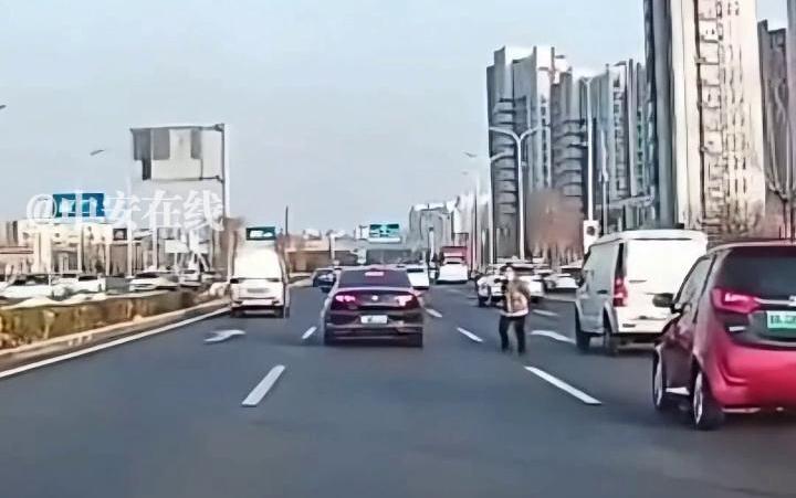 惊险!河南老人横穿马路,前车刹停后又冲向另一车,终被撞倒