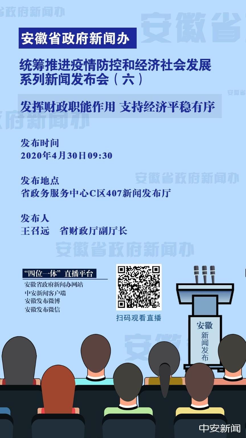 4月30日上午9:30,省政府新闻办在省政务服务中心C区407新闻发布厅举办统筹推进疫情防控和经济社会发展系列新闻发布会(第六场),省财政厅副厅长王召远到会,介绍“发挥财政职能作用 支持经济平稳有序”情况,并回答记者提问。敬请关注!