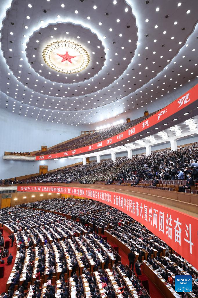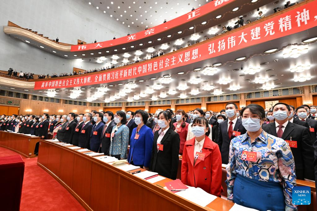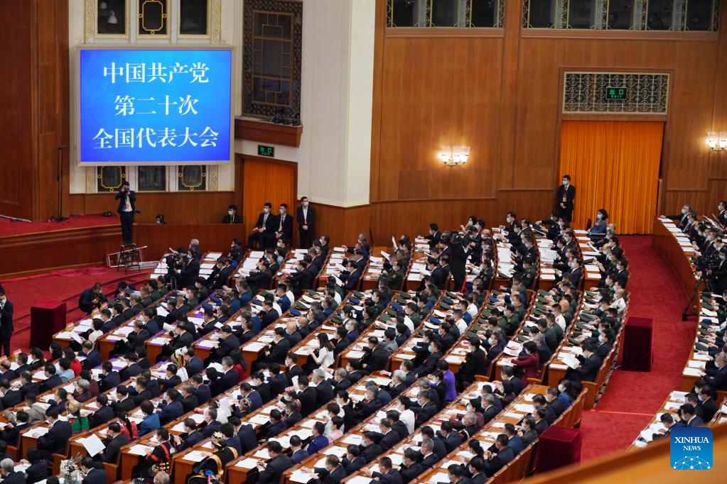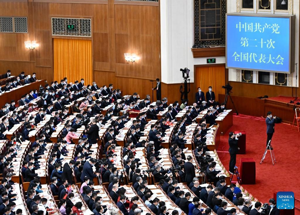 The 20th National Congress of the Communist Party of China (CPC) opens at the Great Hall of the People in Beijing, capital of China, Oct. 16, 2022. Xi Jinping delivered a report to the 20th CPC National Congress on behalf of the 19th CPC Central Committee on Sunday. (Xinhua/Yue Yuewei)