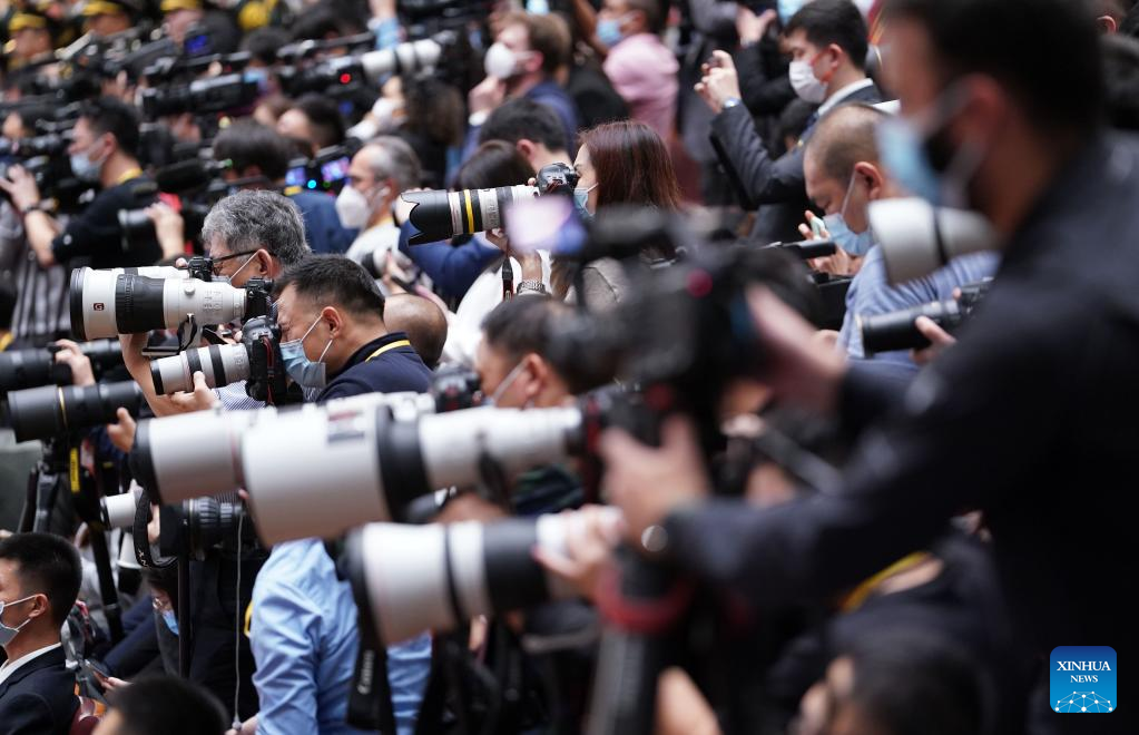 Journalists work at the opening session of the 20th National Congress of the Communist Party of China (CPC) in the Great Hall of the People in Beijing, capital of China, Oct. 16, 2022. (Xinhua/Chen Yehua)
