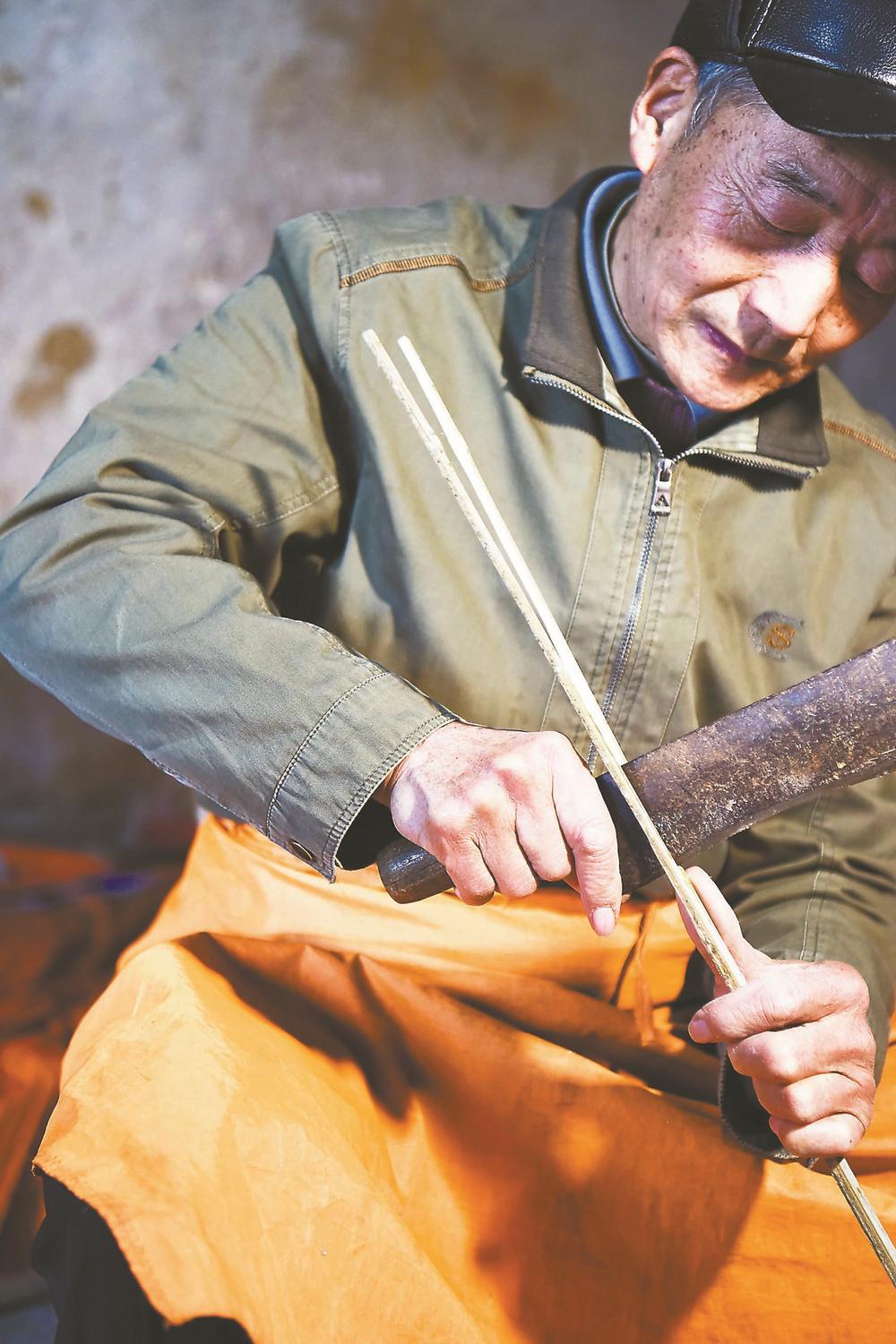 Splitting bamboo, grinding frames, engraving spreaders, and threading colored threads, Zheng Guomin is familiar with every step of the process.