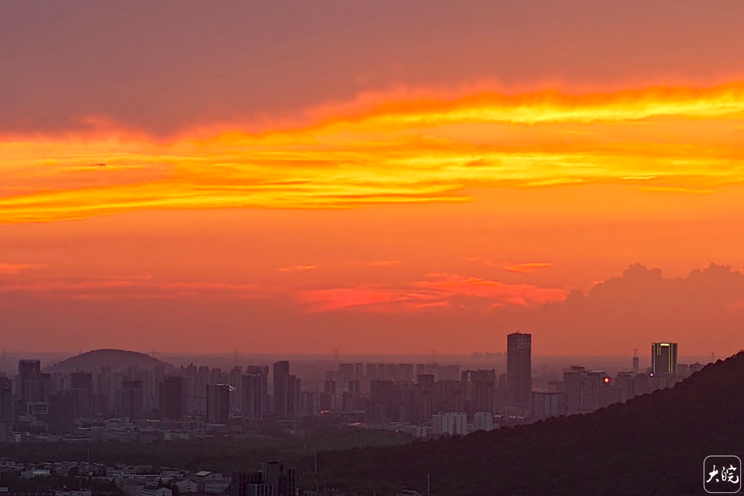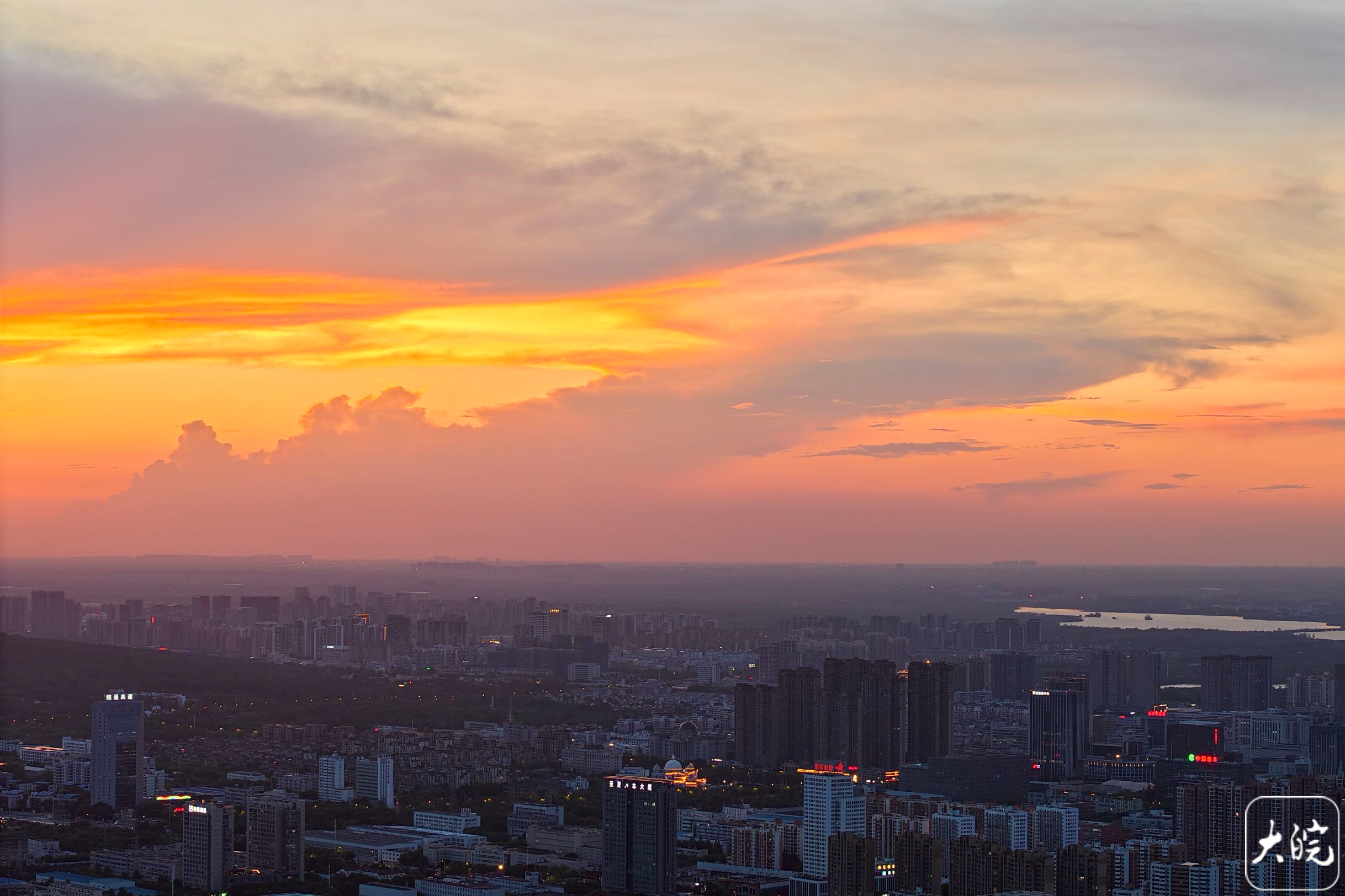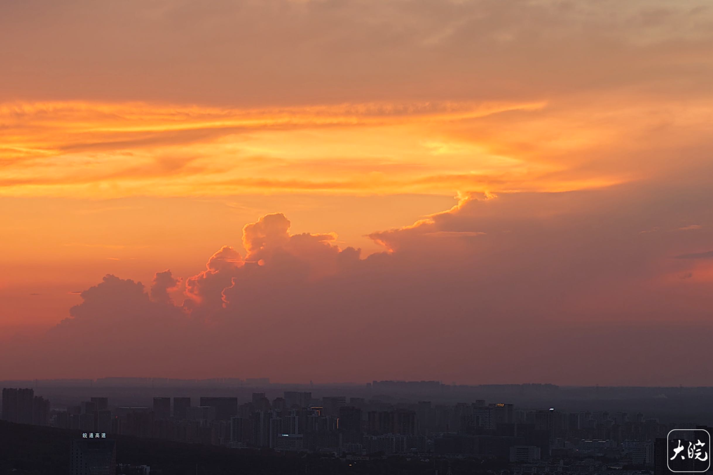 8月14日,连日阴雨天气后,合肥迎来晴热天气。傍晚时分,夕阳西下,合肥天边出现绚丽晚霞。