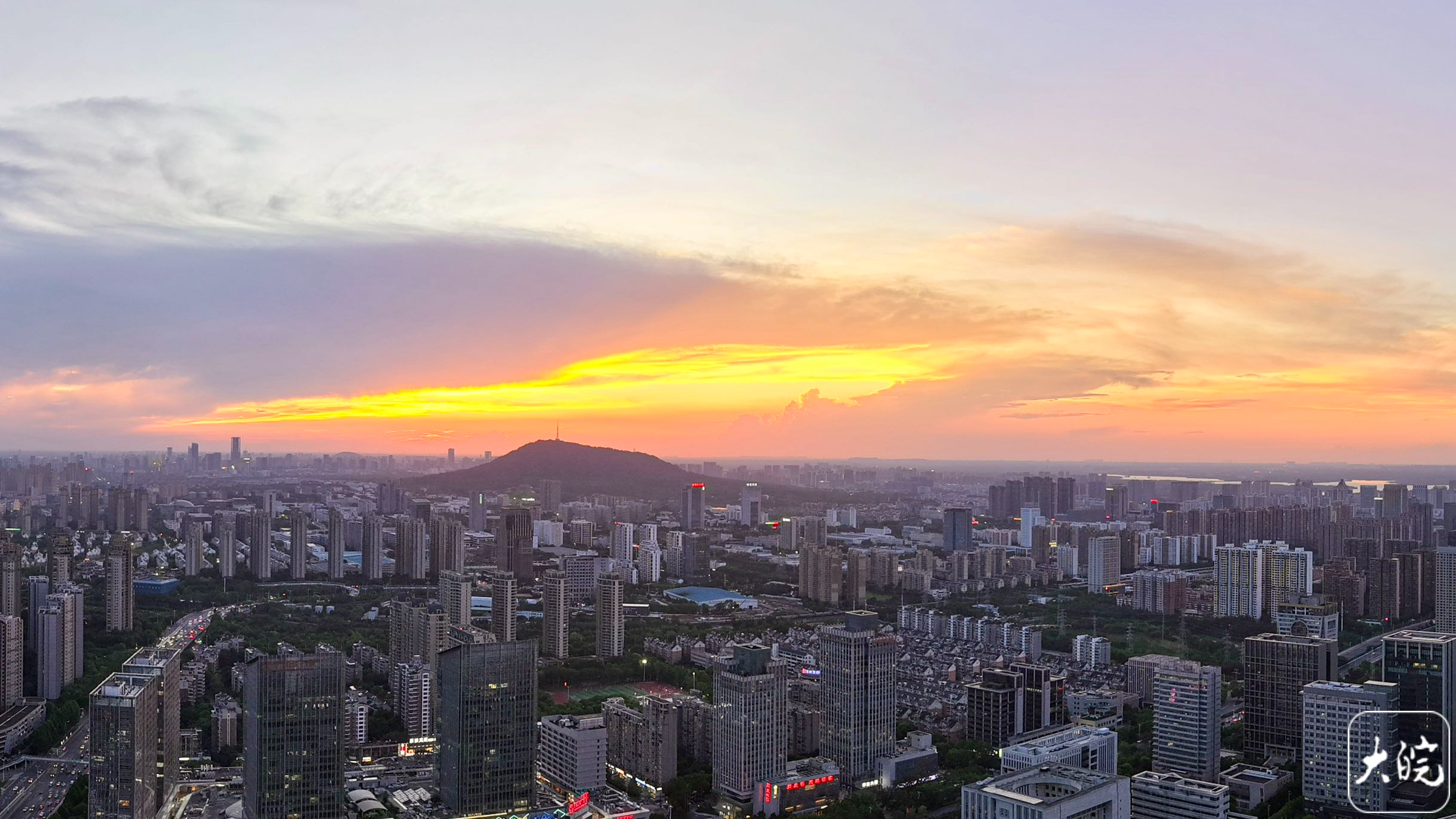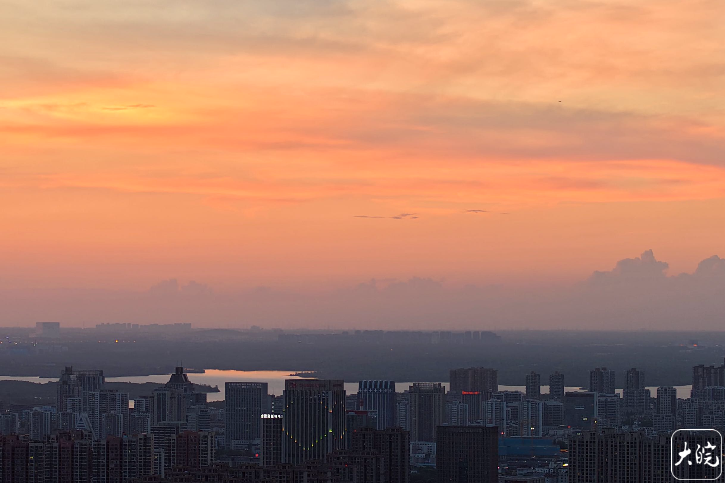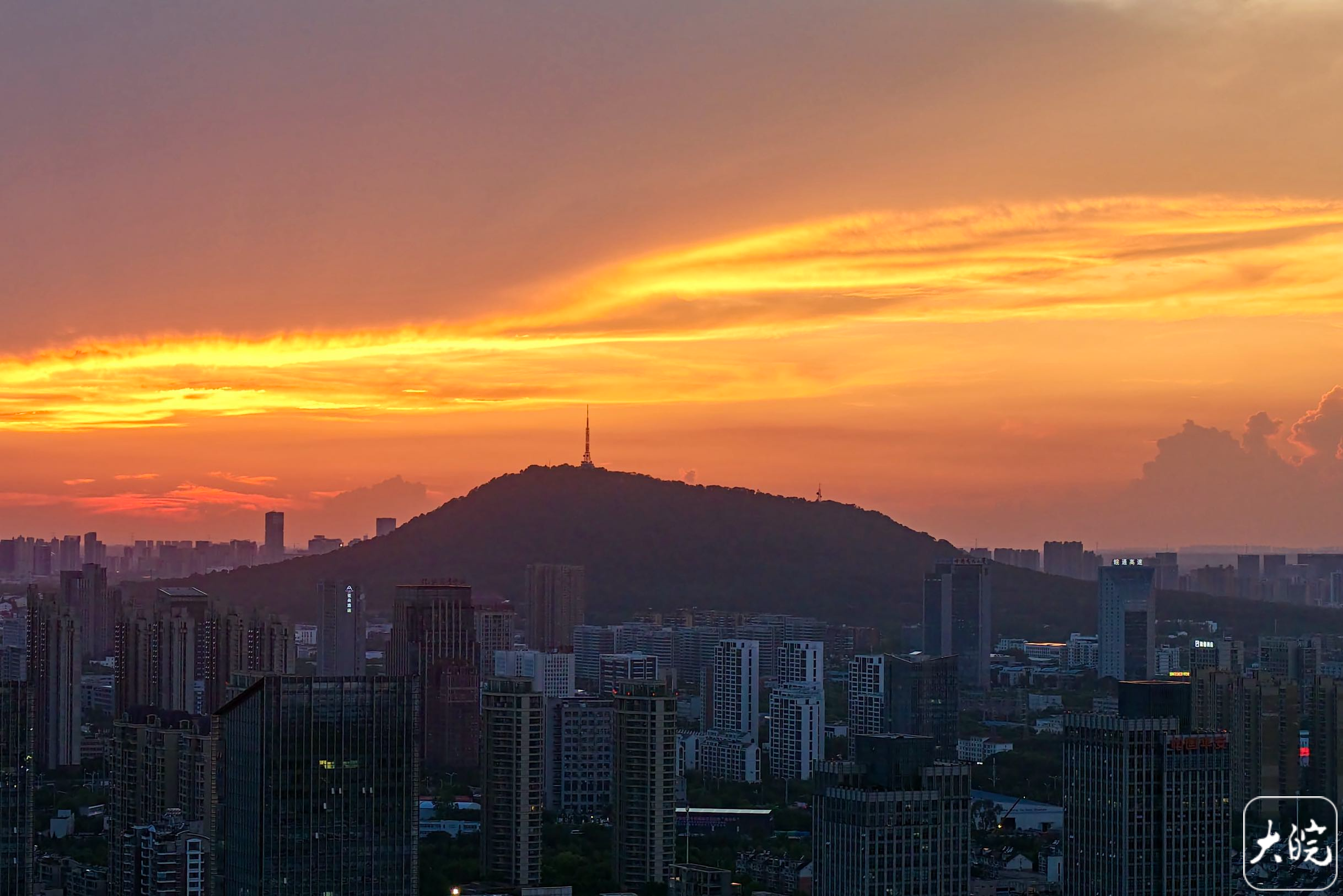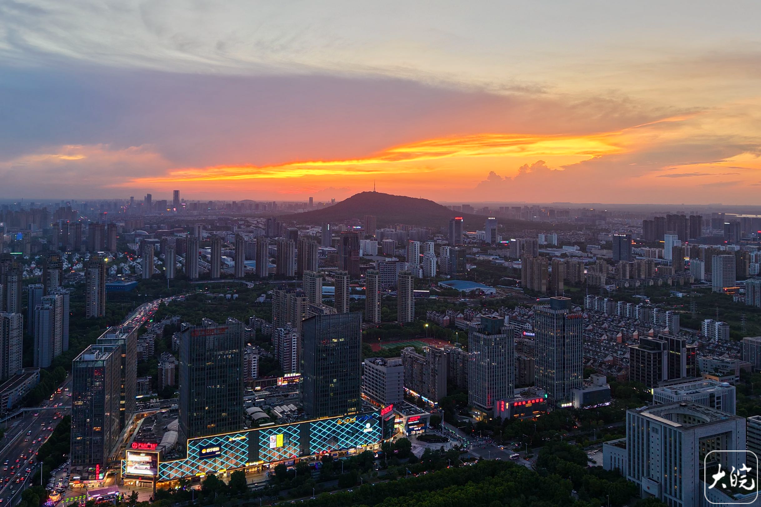 8月14日,连日阴雨天气后,合肥迎来晴热天气。傍晚时分,夕阳西下,合肥天边出现绚丽晚霞。