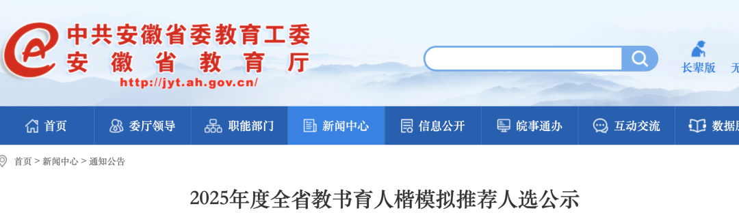 8月14日,安徽省教育厅公示2025年度全省教书育人楷模拟推荐人选。