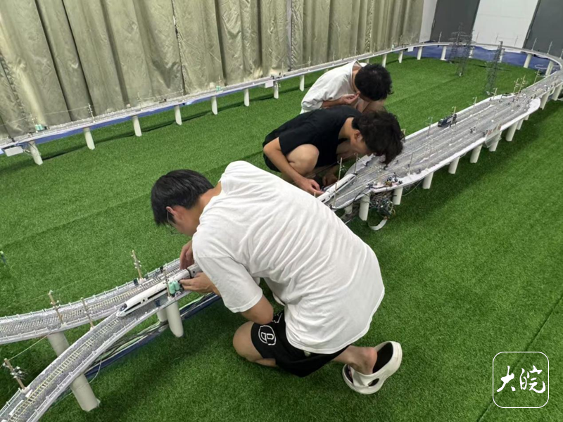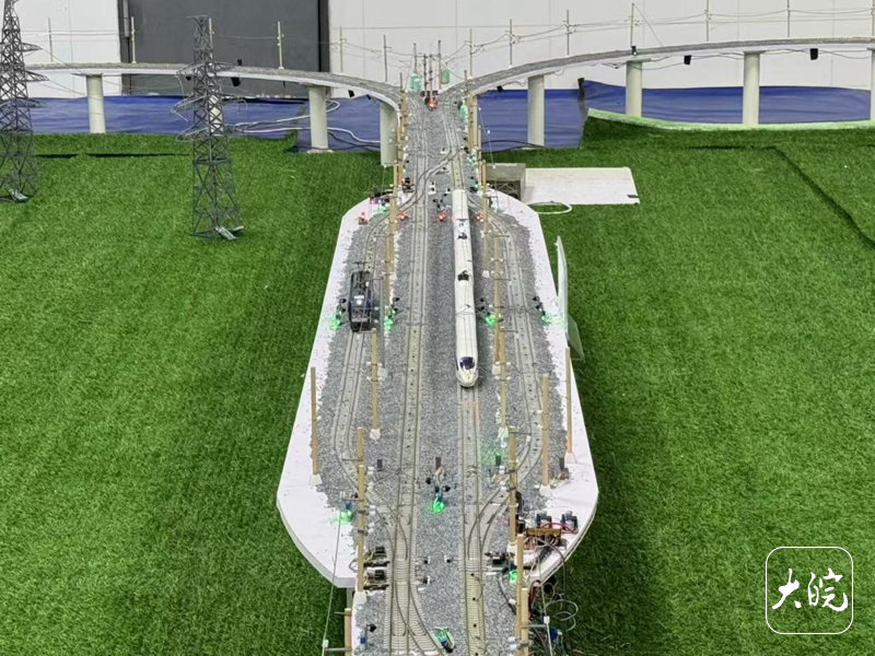 “模型按1:87比例缩小,每秒最快1.5米的速度,换算后可达到真实高铁的运行速度。”杨朕指着模型告诉大皖新闻记者,最具挑战性的是接触网的设计——初期因导高设置不够、受电弓氧化,列车常出现短暂掉电。经多次改进,他加装电容对抗电压突变,最终解决了这一难题,“就像给模型装了‘稳压器’,现在能保持稳定运行。”