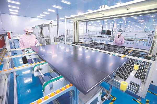 位于安庆市宿松县的中信博光电科技(宿松)有限公司智能生产车间内,工人正在对层压前光伏板进行巡检。(资料图片) 通讯员 江胜 陈星 摄