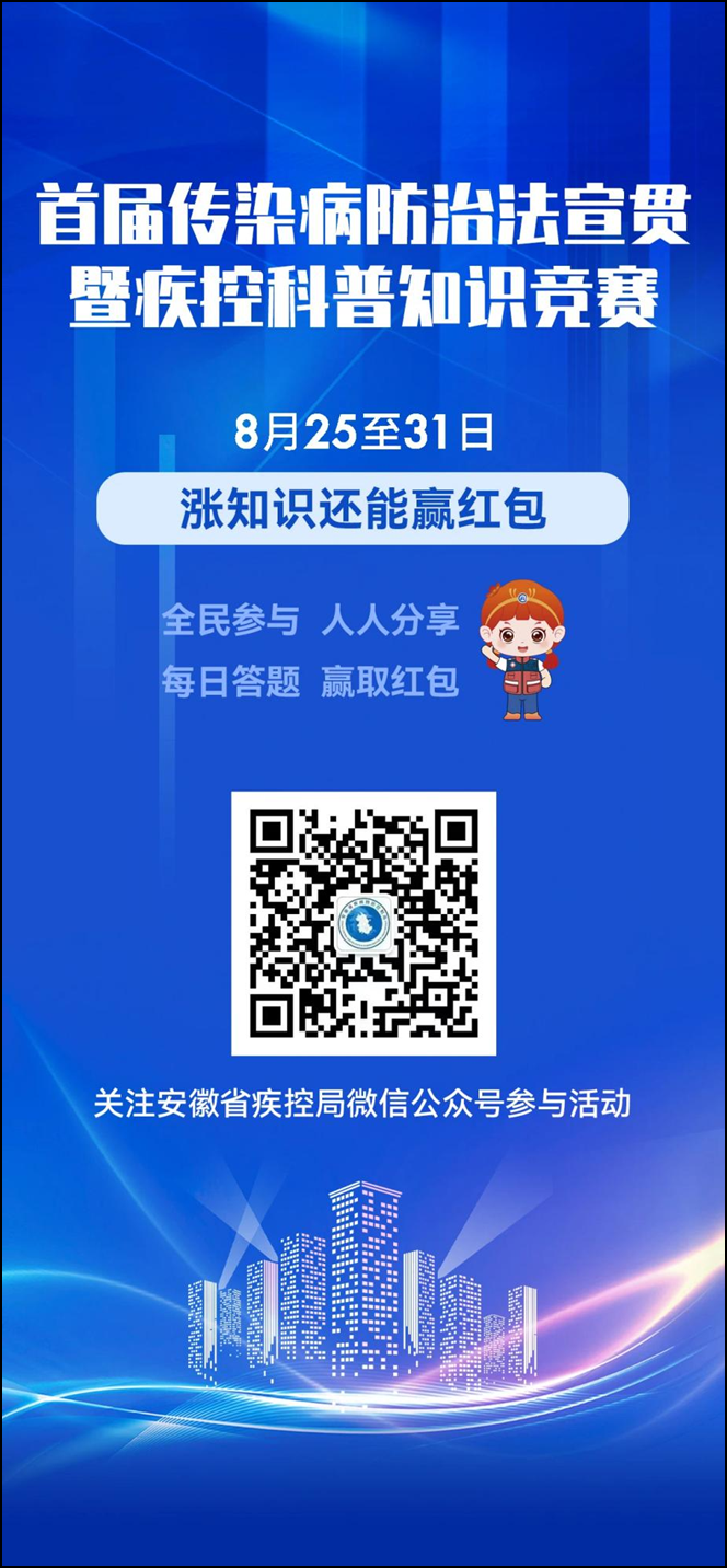 中安在线、中安新闻客户端讯 8月25日至31日,由安徽省疾病预防控制局主办的首届传染病防治法宣贯暨疾控科普知识竞赛将持续开展一周。竞赛以“健康安徽 科普先行”为主题,涵盖新修订的《传染病防治法》宣贯、传染病防治、健康生活方式、体重管理等知识点,题目紧贴群众日常关切。活动通过趣味化、互动化的方式,普及科学健康知识,增强群众疾病预防意识,提升全民健康素养,推进健康安徽建设。