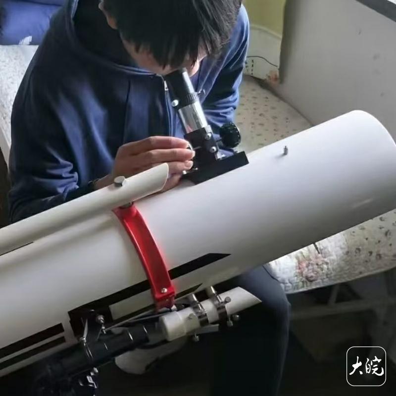 2006年3月出生的陶然现居住于池州市贵池区江口街道,今年刚参加完高考的他,即将开启大学旅程。说起他的星空追梦故事,还要追溯到高一寒假:陶然偶然在网络上看到国外爱好者自制望远镜的视频后,本就热爱天文的他立刻被点燃热情。“当时觉得专业设备太贵了,不如自己动手。”于是,他利用课余时间查阅资料,并买来PVC水管和配件,切割、组装,做出了第一架反射式望远镜。