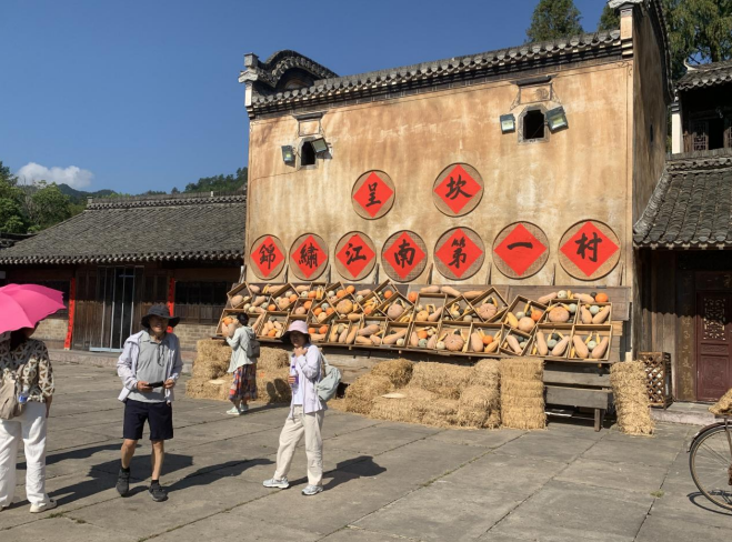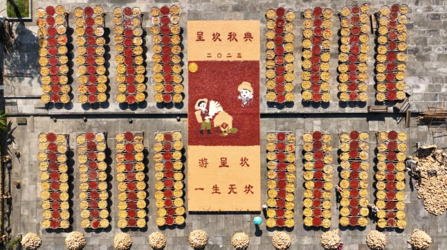 呈坎晒秋习俗可追溯至东汉三国时期,源于“春祈秋报”的古老传统。村民在“长春大社”祭祀土地神与五谷神后,将秋收作物晾晒于房前屋后,既为防潮储存,更寄托对风调雨顺的祈愿。自呈坎景区推出《家业》剧组同款鱼灯表演——“盛世徽州·呈坎社戏·一夜鱼龙舞”后,传统非遗与晒秋景观碰撞出其独特的魅力。游客可穿梭于八卦阵布局的街巷,体验“朝晒暮舞”的田园诗意。到了立秋,呈坎景区以“晒秋”推动“农俗+文旅”融合模式,现在的八卦八门的晒场被打造为“最美晒秋打卡地”,村民用农作物拼出“呈坎秋典”等巨型图案,日均吸引1000余名游客。据呈坎景区工作人员介绍,农家乐、农产品加工,做村宴,卖农产等业态蓬勃发展,直接带动村民年均增收40%。