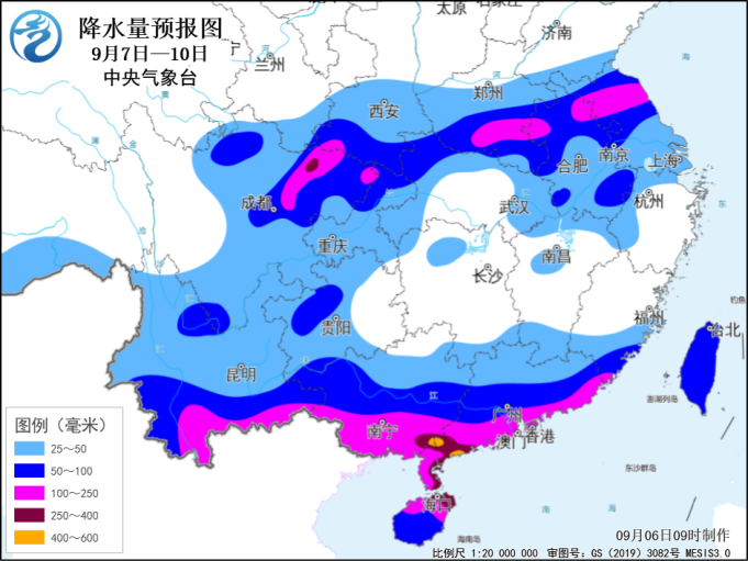 预计7日至10日,华南中南部、云南大部、贵州自东向西先后有大到暴雨,其中广东南部、海南岛北部、广西南部、云南南部等部分地区有大暴雨,广东西南部、广西东南部局地有特大暴雨;上述部分地区累计降雨量有80~180毫米,局地可达250~400毫米;部分地区并有短时强降雨(最大小时雨量30~50毫米,局地90~110毫米)、雷暴大风等强对流天气。