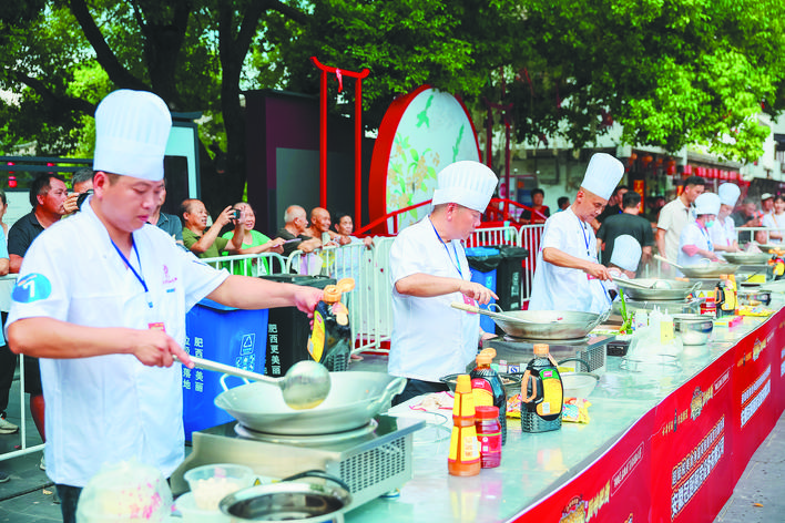 9月5日,“超级皖”合肥美食挑战赛肥西县选拔赛暨“新徽菜·名徽厨”美食技能大赛,在素有“千年水乡古镇”美誉的肥西县三河古镇圆满落下帷幕。大赛会聚全县50位优秀餐饮从业者各展所长、同台竞技,其中优胜者将组队冲击“超级皖”合肥市级挑战赛。记者 王峰/文 通讯员 王晓骞 孙永花/摄