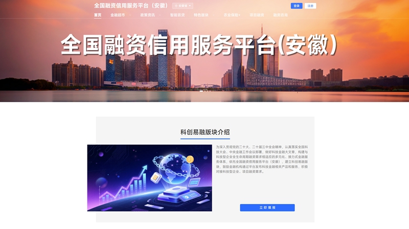目前,全国融资信用服务平台(安徽)运用1个省级和16个市级融资信用服务平台网络,正在打造覆盖信贷、保险、担保、股权投资、租赁、期权等全量金融资源的服务矩阵,破解各类融资共性难题。