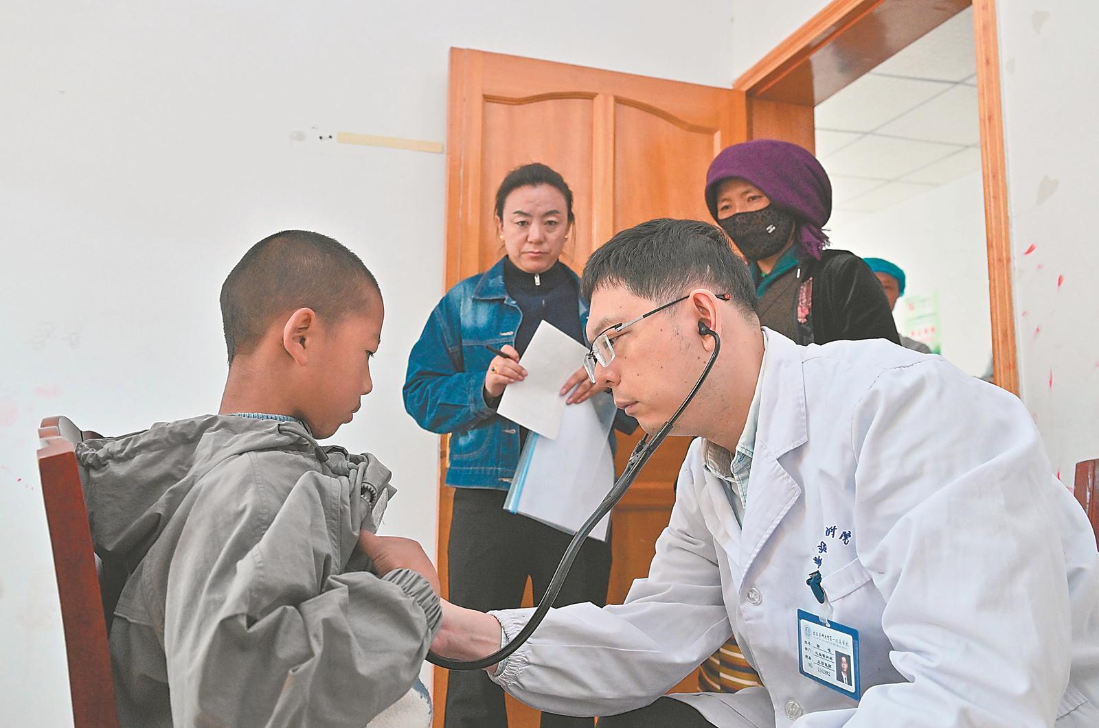 9月13日,西藏山南市措美县中心医院,来自安医大一附院的医生在给儿童做先心病筛查。当天,安医大一附院第十批先天性心脏病筛查工作队对措美县24名儿童进行筛查,精准识别患病儿童,并为下一步的治疗建立健康档案。作为安徽省对口支援西藏山南市先天性心脏病筛查和救治的医疗机构,自2012年开始,安医大一附院已先后完成1750余名先心病患儿筛查,40余名患儿得到有效救治。记者 程兆 摄/视觉安徽