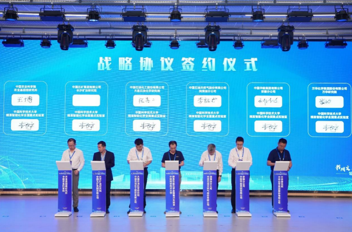 会上,精准智能化学全国重点实验室主任李震宇教授与中石油润滑油分公司、中石化大连石油化学研究院、华能集团安徽分公司、五矿集团长沙矿冶研究院有限责任公司、万华化学集团万华研究院、中国农业科学院农业基因组研究所的代表签订了战略合作协议。