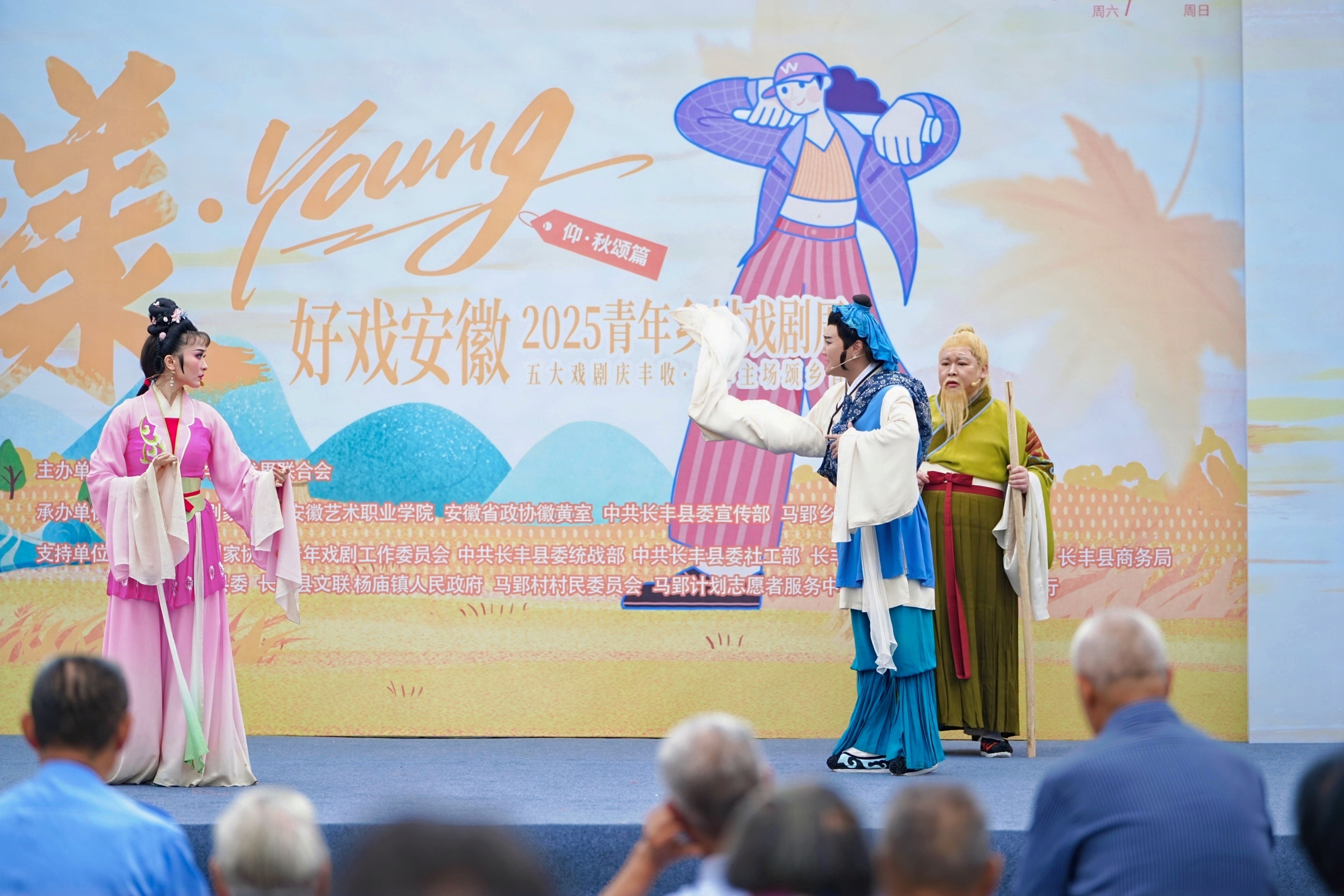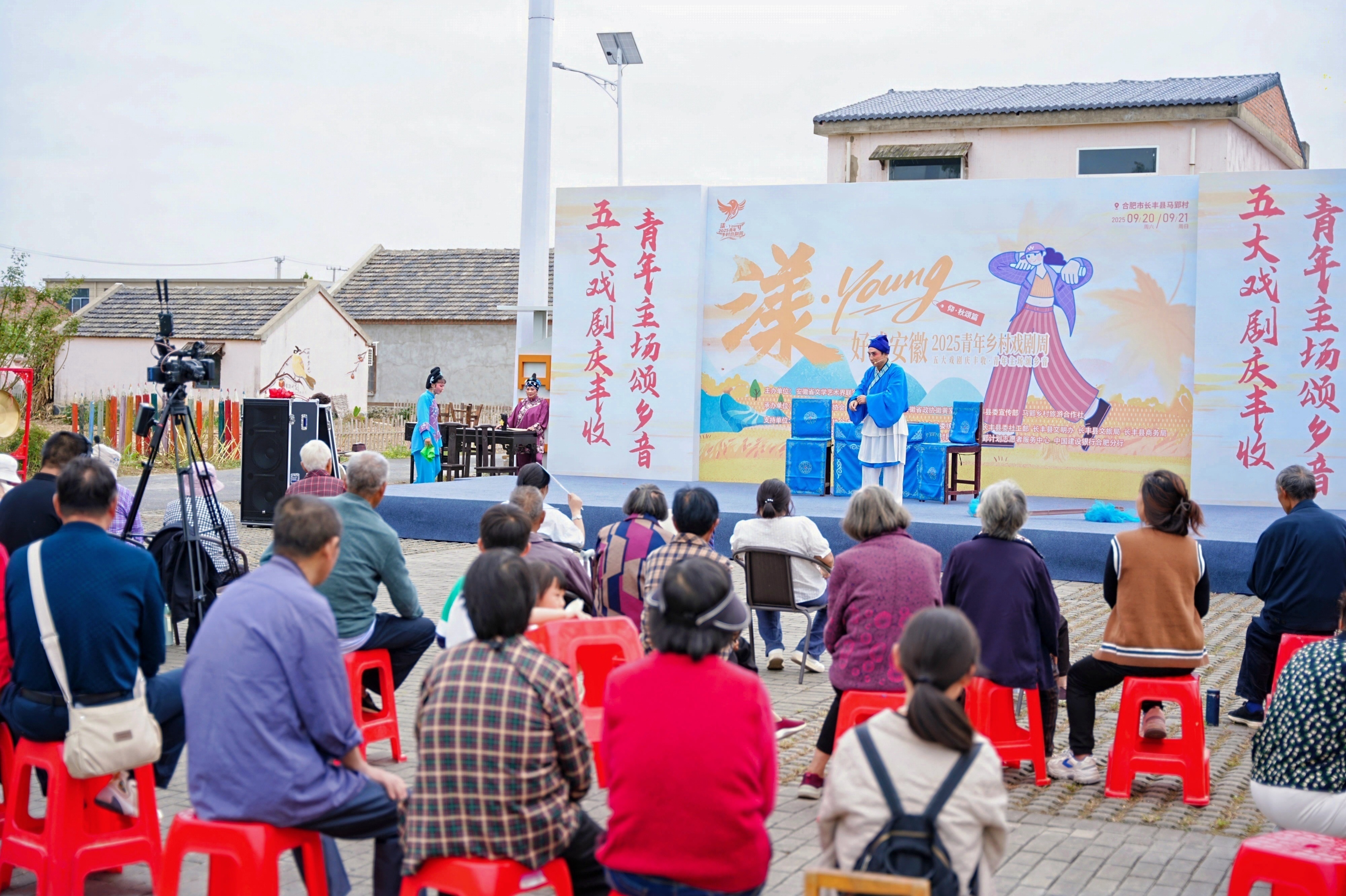 中安在线、中安新闻客户端讯 9月20—21日,由安徽省文学艺术界联合会主办,安徽省戏剧家协会、安徽艺术职业学院、安徽省政协徽黄室、中共长丰县委宣传部等联合承办的“好戏安徽·漾·Young”2025青年乡村戏剧周第三季“仰·秋颂”,在合肥市长丰县杨庙镇马郢村全景上演。徽剧、黄梅戏、庐剧、泗州戏、皖南花鼓戏——安徽五大代表性剧种首次同台庆丰收,以“青年主场+村民主角+市集赋能”的融合范式,把文化惠民做到田间地头,用文艺“活水”激荡乡村振兴“一池春水”。
