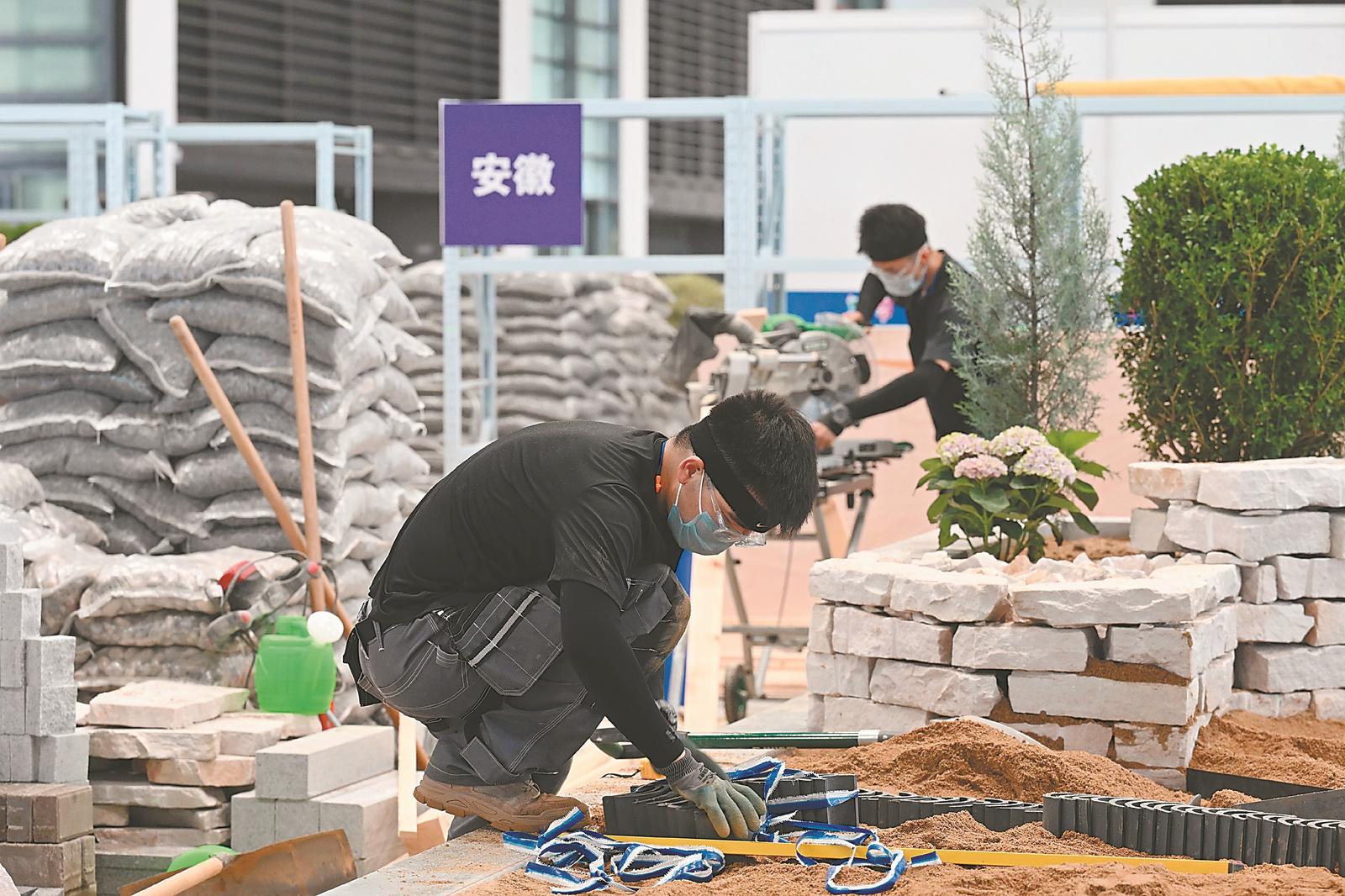 9月21日,来自黄山学院的聂铸(前)、蔡润参加园艺项目比赛,最终获得该项目金牌。