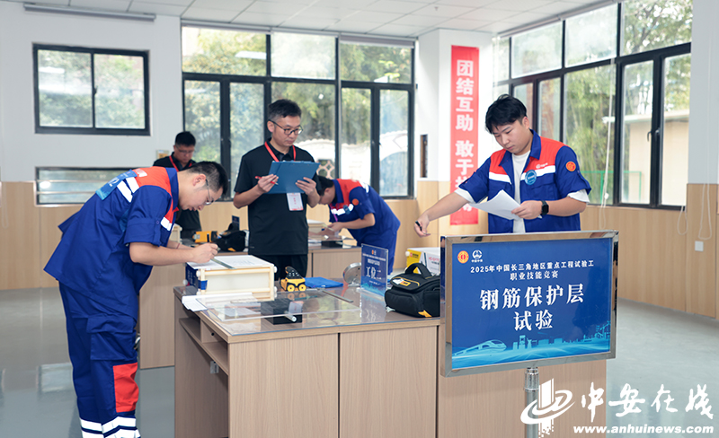 中安在线、中安新闻客户端讯 9月27日至29日,2025年中国长三角地区重点工程试验工职业技能竞赛在中铁四局集团试验检测中心基地成功举办。竞赛由上海市、江苏省、浙江省、安徽省总工会与中国中铁工会联合主办,安徽省省部属(直管)企事业工会、中铁四局工会承办,安徽中铁工程技术有限公司协办。来自中国中铁长三角地区16家二级单位的19支代表队、76名试验精英参赛。