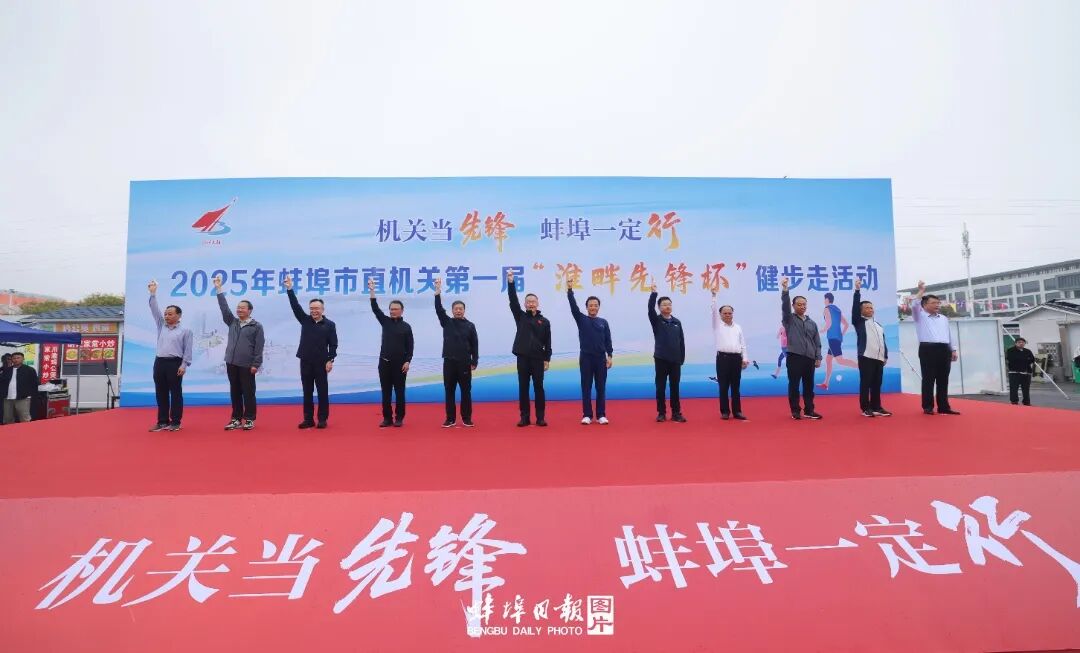 丹桂飘香秋风爽,迈步龙湖启新程。9月27日上午,“机关当先锋 蚌埠一定行”蚌埠市直机关第一届“淮畔先锋杯”健步走活动举行。2000余名来自市直机关、市辖区、市属企事业单位和驻蚌单位、高校的干部职工及学生、劳模代表积极参与。市领导马军、倪建胜、杨森、李波、吴永彬、乔树伟、荀异然;水利部淮河水利委员会党组书记、主任杨锋,中建材玻璃新材料研究院集团党委书记、董事长陶立纲,蚌埠学院党委书记陈国龙,安徽财经大学党委常委、副校长王兵,安徽科技学院党委委员、副院长赵伟峰等参加并鸣枪发令。