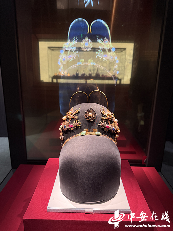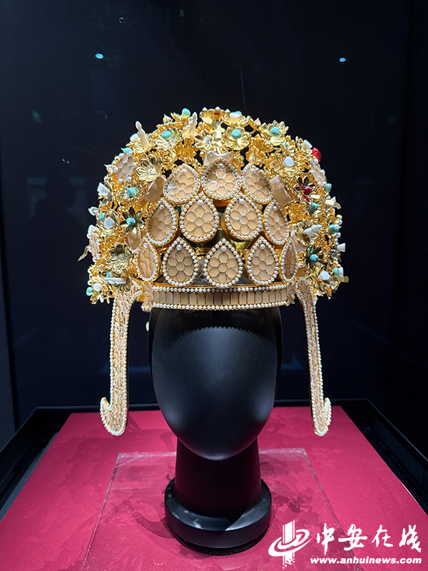 展览以中国目前最早的金饰为切入点,联合三星堆、金沙、武王墩、燕下都、海昏侯、何家村、法门寺、江口沉银、明定陵等全国重要遗址的精品文物,如四川省文物考古研究院藏三星堆商代金面具、内蒙古博物院藏北魏鹿角金步摇、扬州中国大运河博物馆藏隋代萧皇后冠、安徽博物院藏南宋葵花型金盏、南京博物院藏明代金蝉玉叶、明十三陵博物馆藏万历皇帝乌纱翼善冠、铜陵博物馆藏碧玺石金螃蟹等多件重量级“网红”展品。这些熠熠生辉的国宝珍品,不仅展现了古代工匠登峰造极的技艺,更承载着中华民族的礼仪信仰、审美情趣与时代精神。