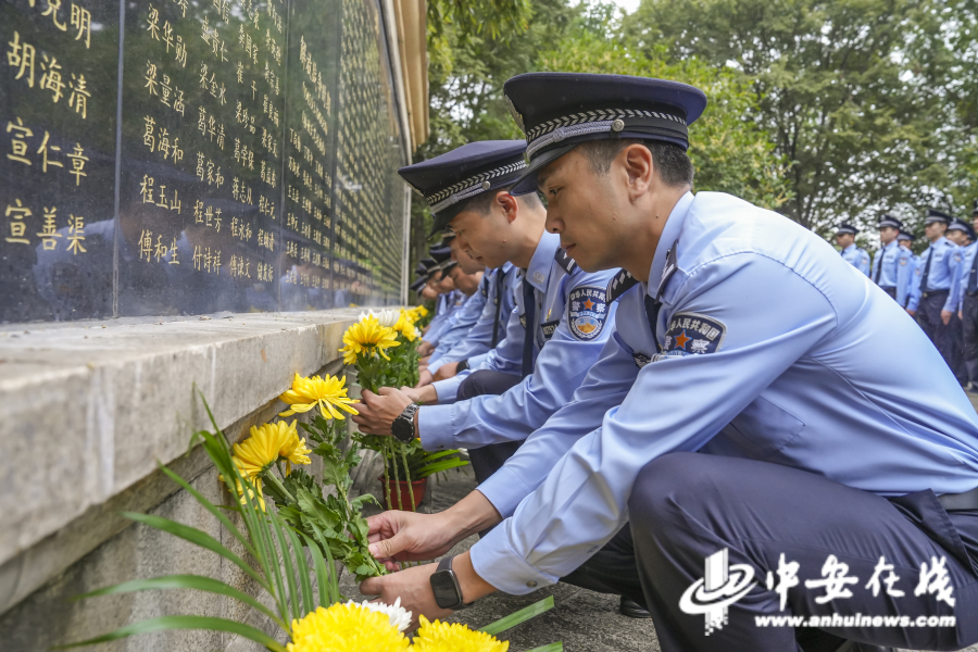 中安在线、中安新闻客户端讯 今年9月30日是我国第十二个烈士纪念日,为深切缅怀革命先烈的丰功伟绩,弘扬英烈精神,传承红色基因,进一步凝聚警心、激励斗志,9月29日上午,肥东县公安局组织民警代表在茶壶山烈士陵园开展烈士纪念日祭奠英烈活动。