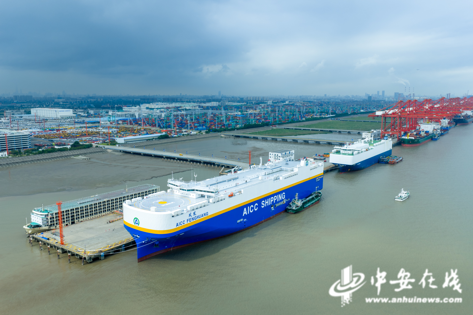 中安在线、中安新闻客户端讯 9月29日,安徽省港航集团旗下航瑞国际公司投资建造的首批7000车位LNG双燃料远洋滚装船3号船“凤凰”轮在上海海通国际汽车码头正式命名交付并开启首航,安徽国际远洋滚装运输船队规模进一步扩充。