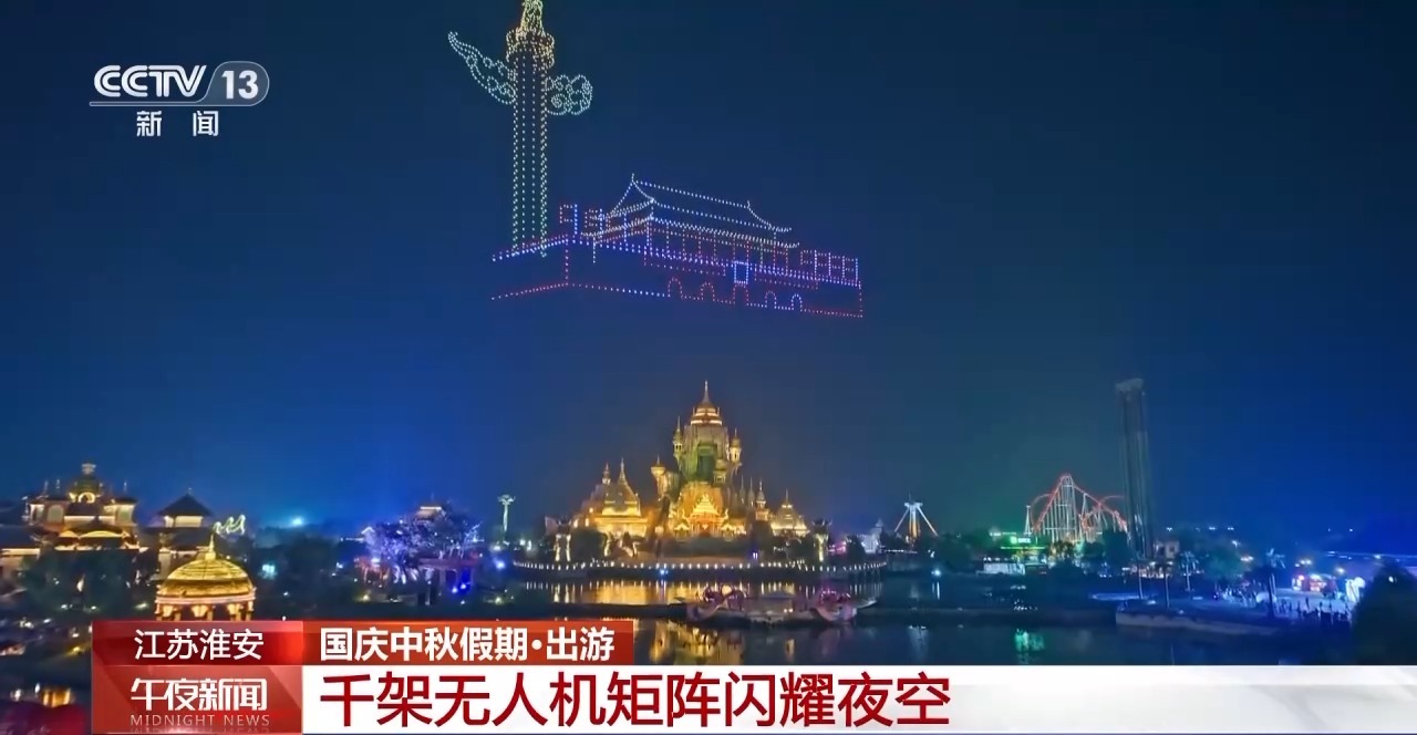 江苏淮安:千架无人机矩阵闪耀夜空 “水幕+烟花”演绎双重浪漫