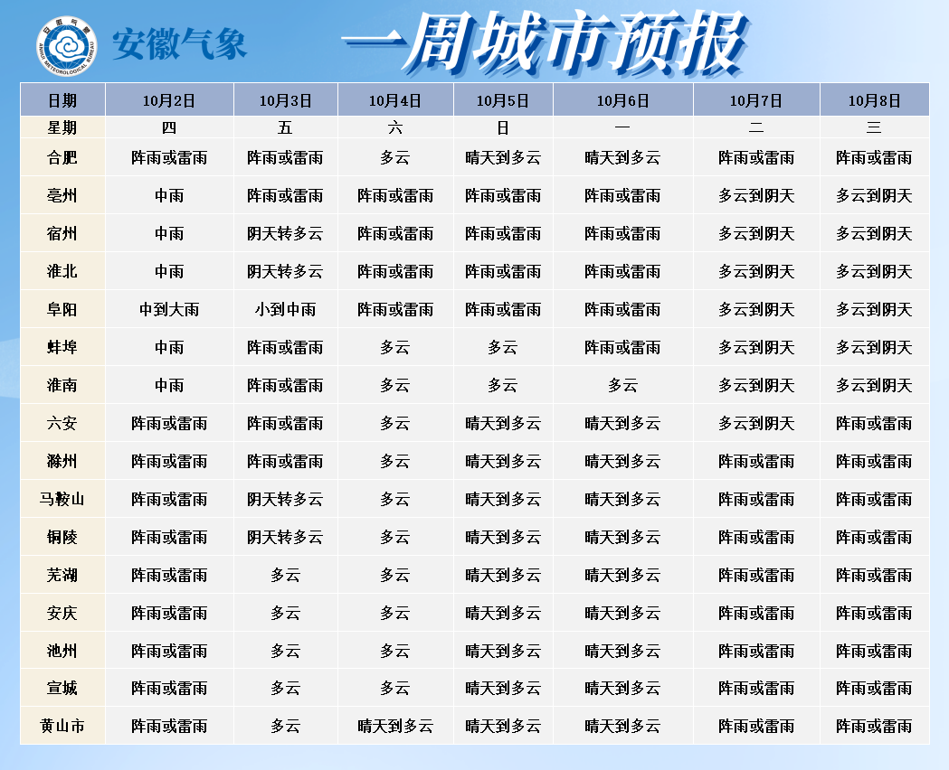 今天全省大部分地区有阵雨或雷雨。4-6日淮河以北、7-8日淮河以南部分地区有阵雨或雷雨。10-11日我省自北向南有一次降水过程。